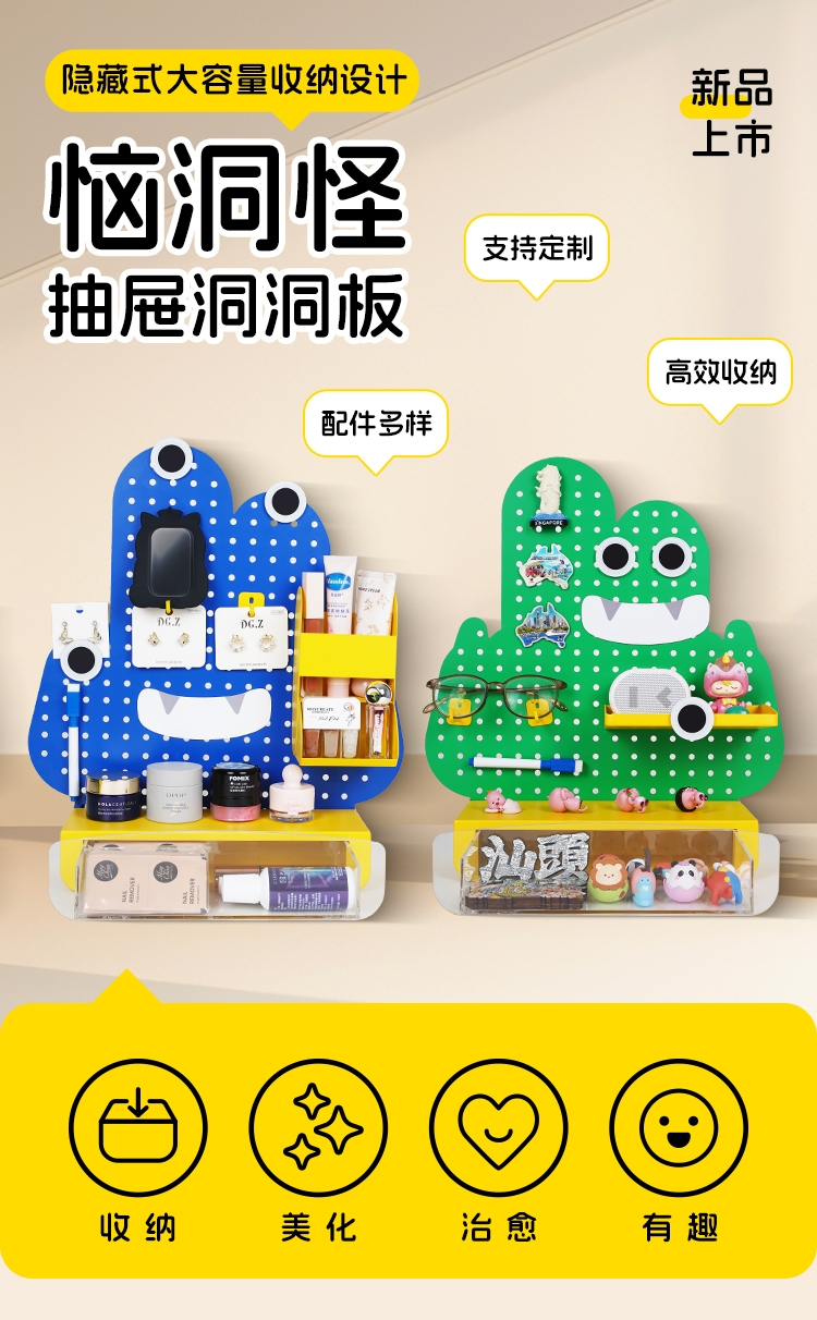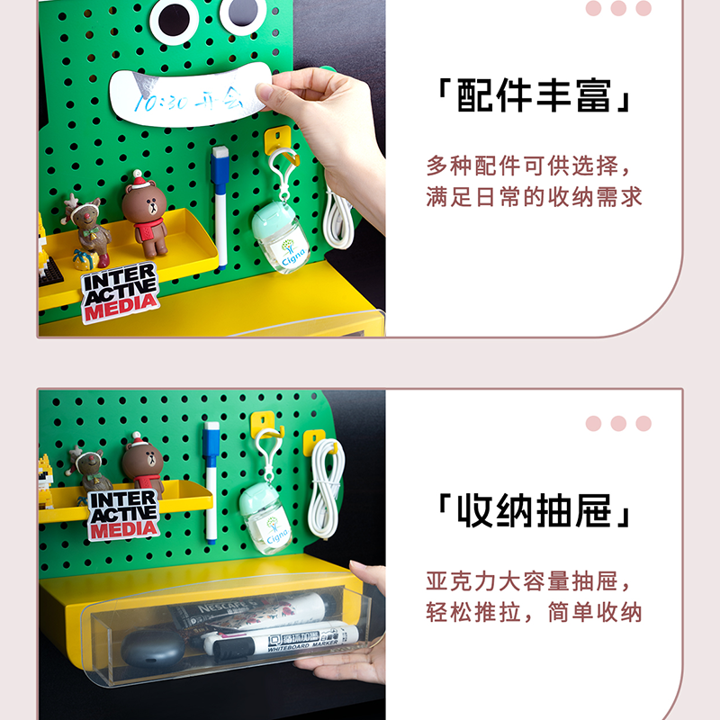 含吃猫文创全新原创设计异地洞洞板脑洞怪系列;可定制配件、冰箱贴、白板贴、logo定制、私印;全网首发,价格实惠,学生学习、员工办公好帮手