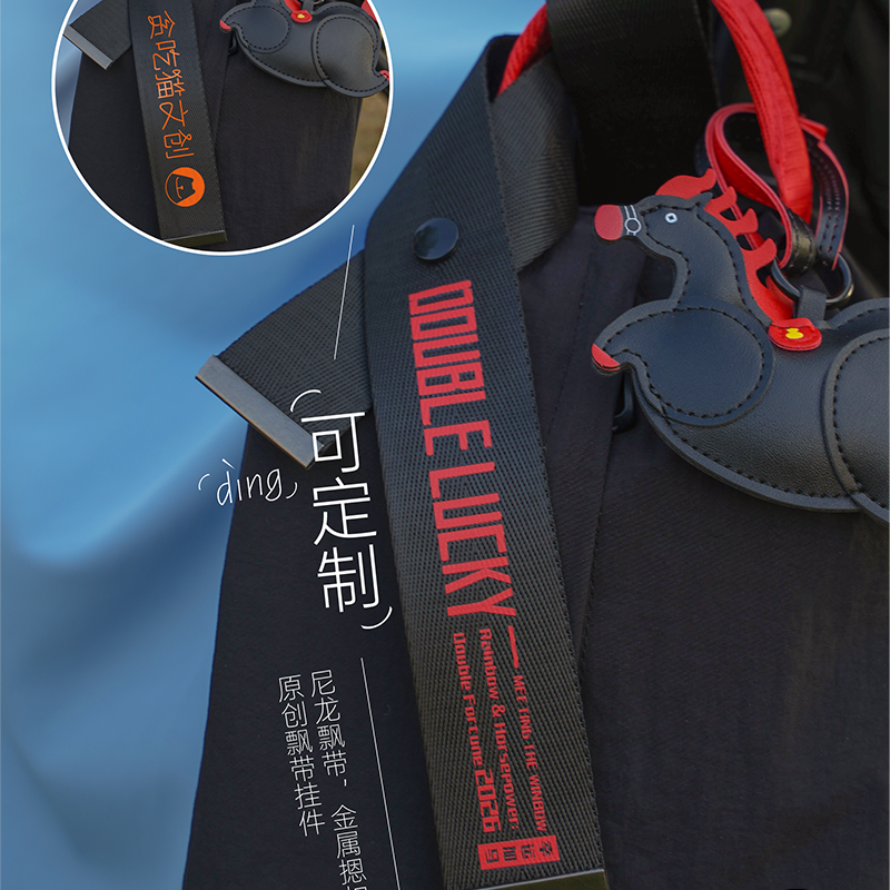 可斜挎,手提,胸前,后背;织带可定制;现货充足发货速度快