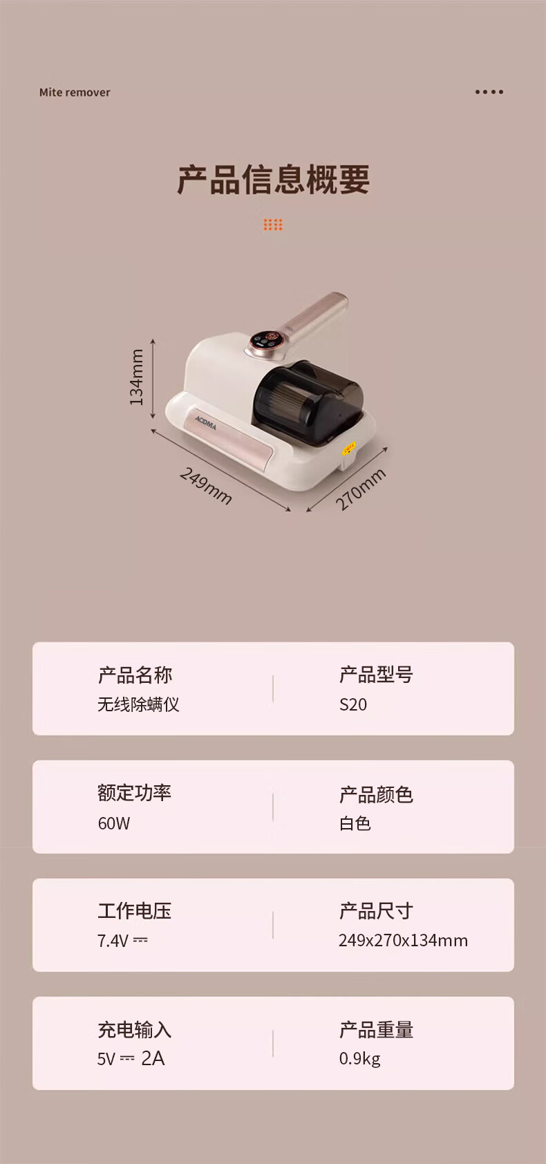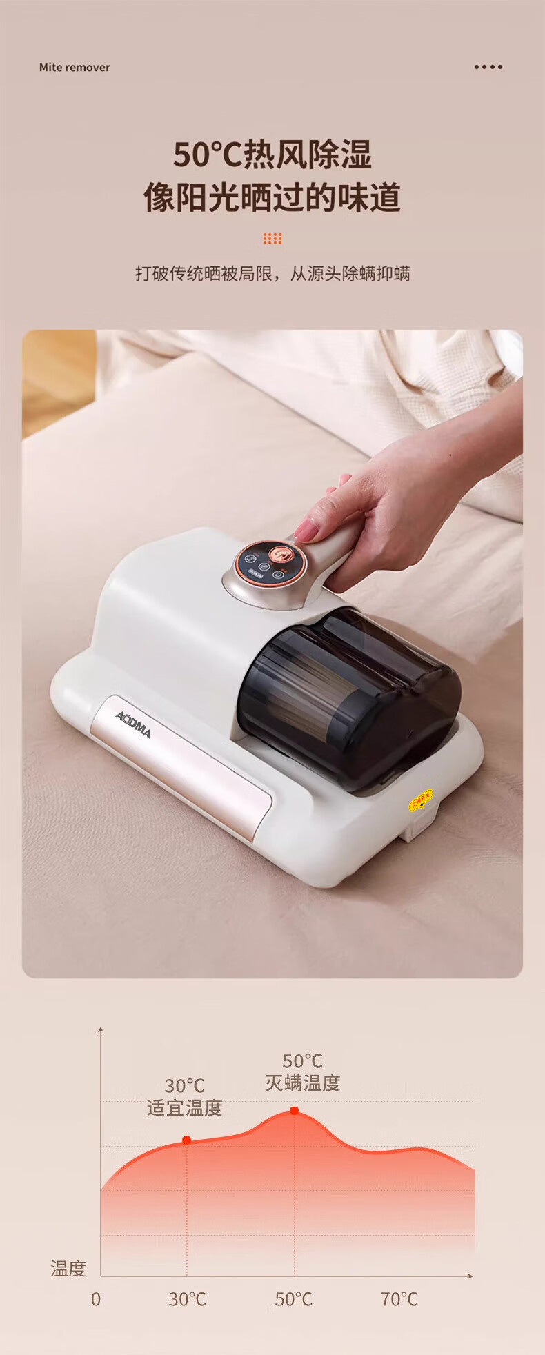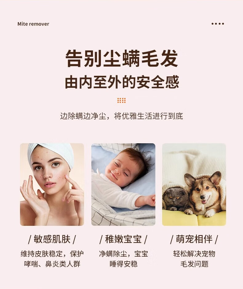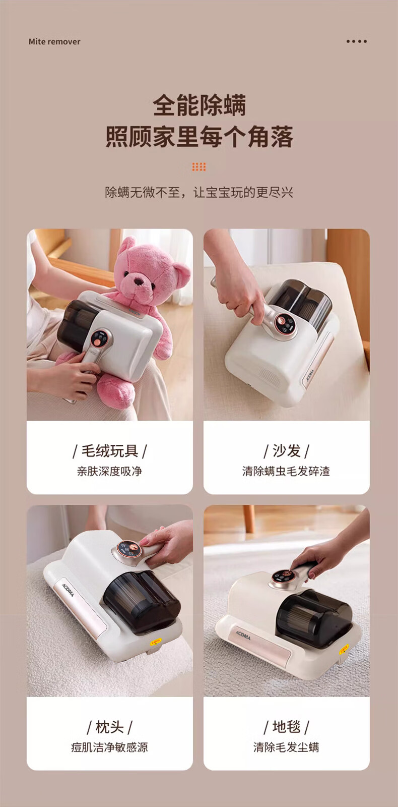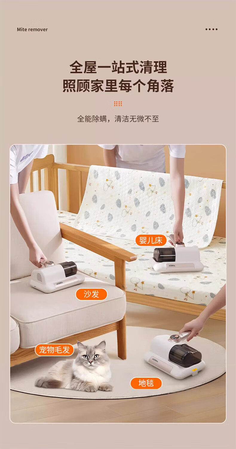 UV紫外线杀菌,纳米级光源照射真实除菌;双杯设计,尘螨真分离,一边尘螨 一边过滤;高频双拍打+倾斜式吸尘口轻松将螨虫灰尘收入囊中