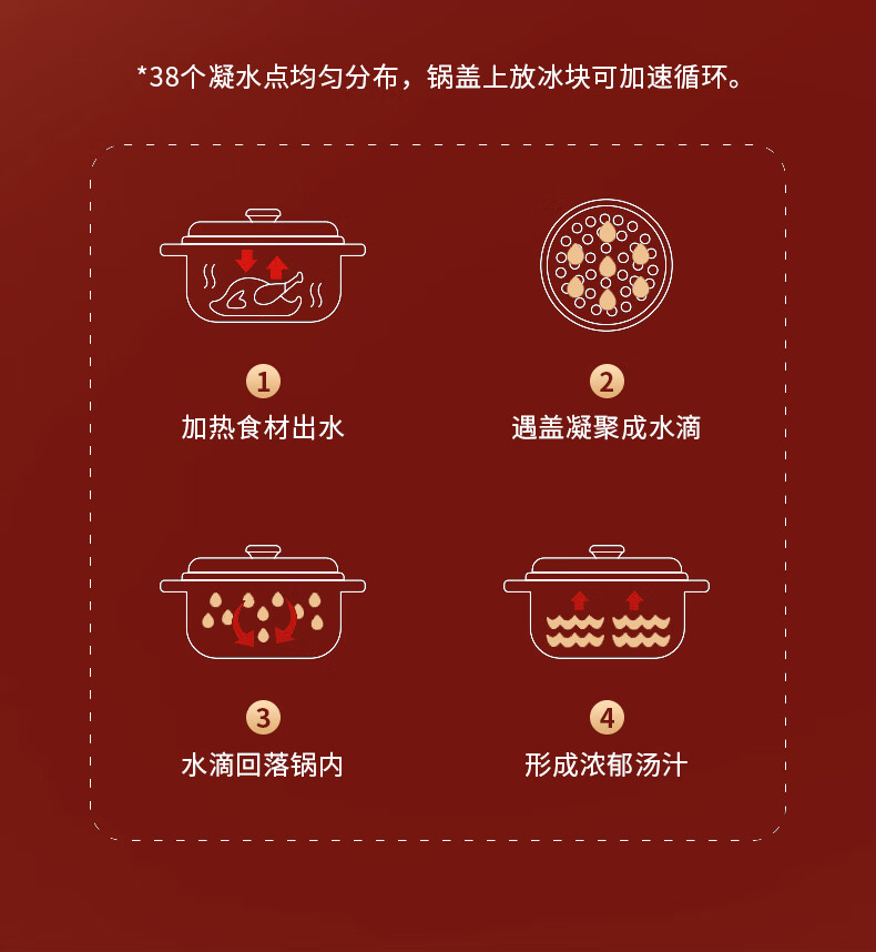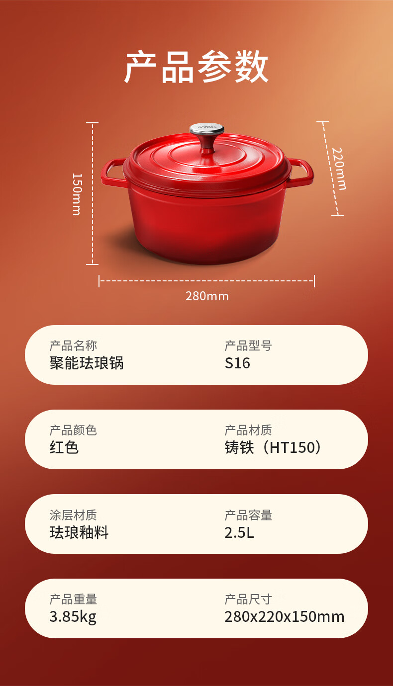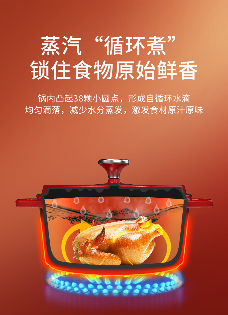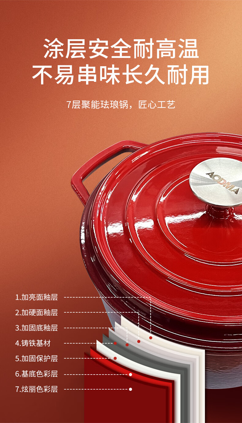 进口珐琅釉,渐变色设计,超高颜值,不沾污易清洗;燃气灶、电磁炉、电丝炉、电陶炉、烤箱等多种炉灶通用;导热快保温能力强,加热后表面会捕获热量 更保温