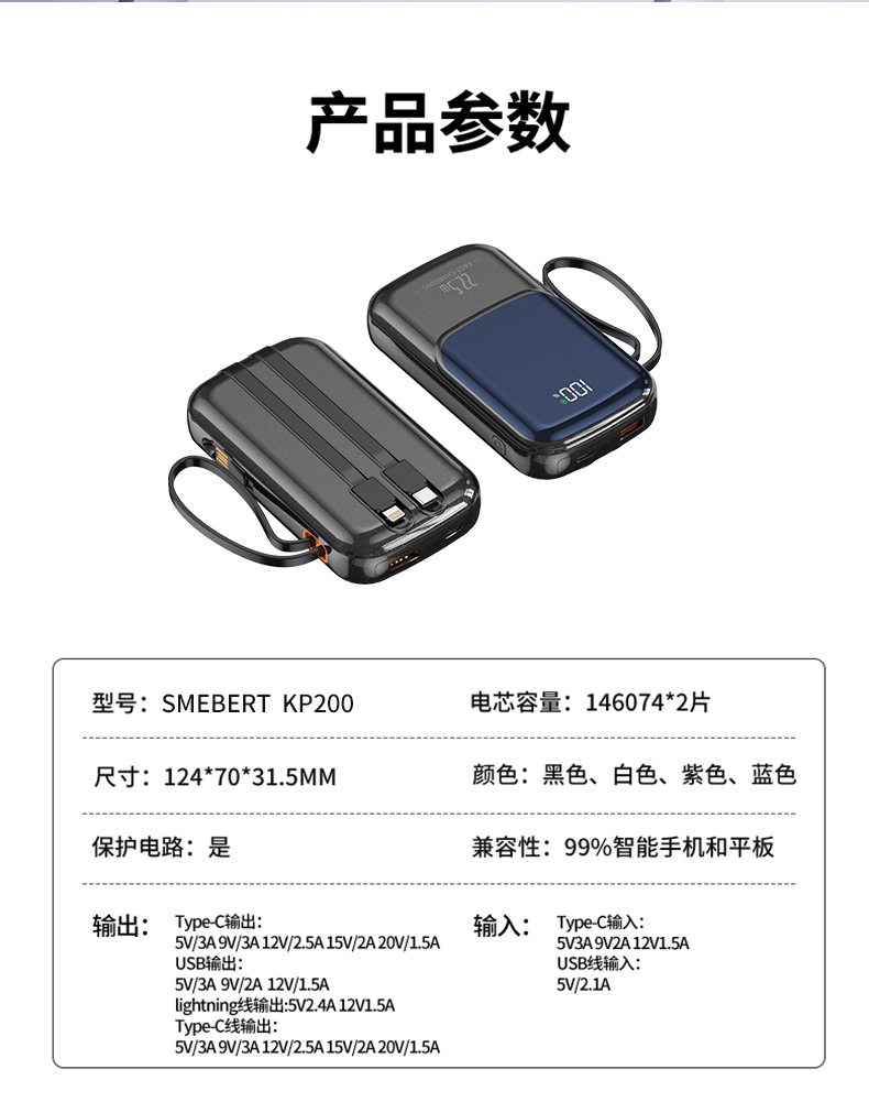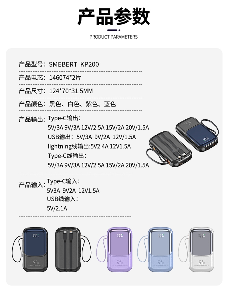舒曼.伯特SMEBERT 超级快充移动电源KP200