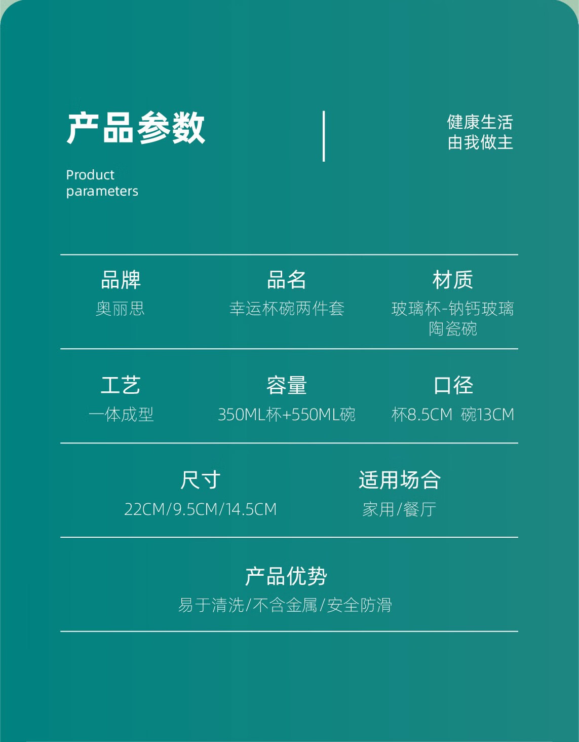 材 质::玻璃杯-钠钙玻璃(耐温0℃~80℃) 陶瓷碗(耐温-20℃~100℃)