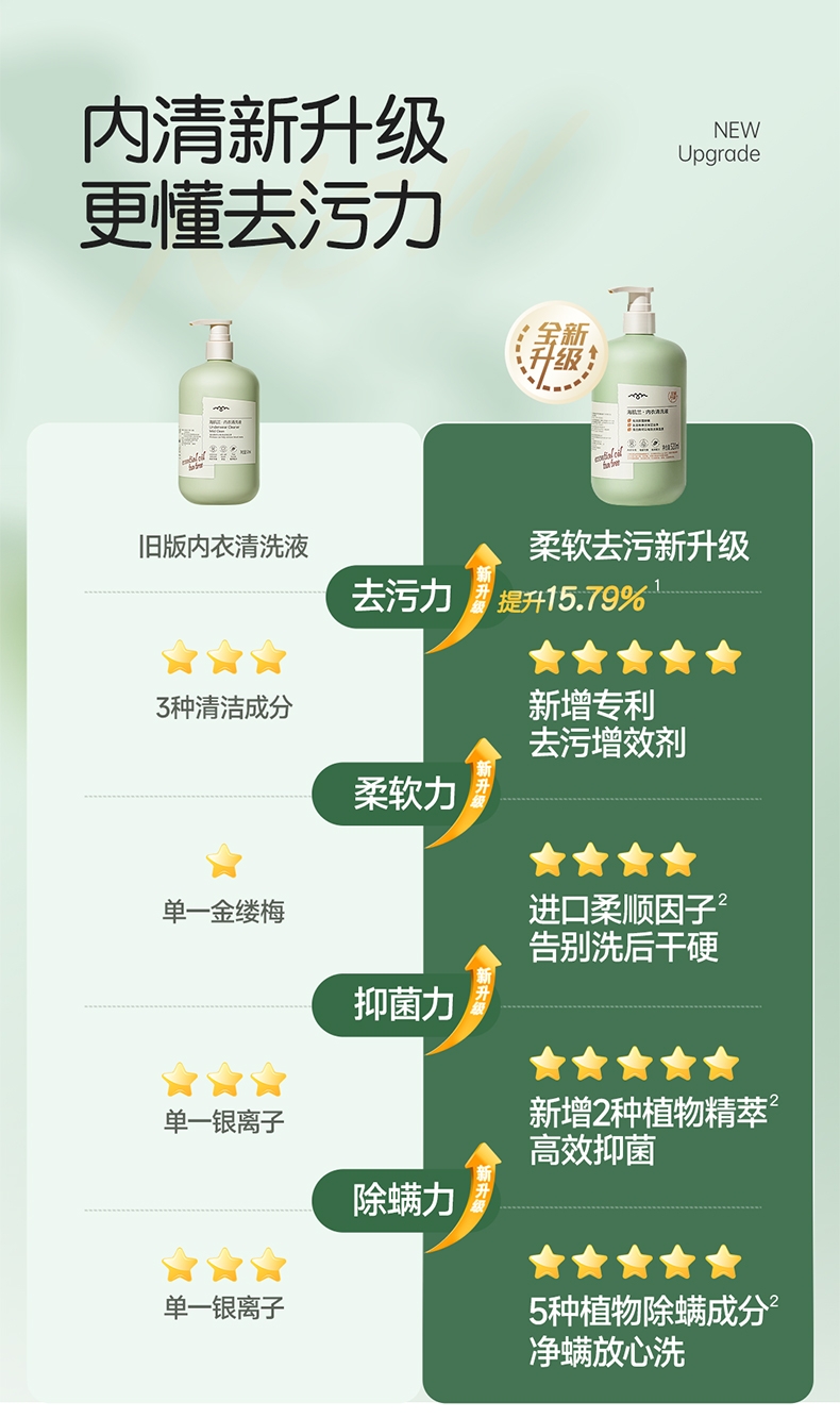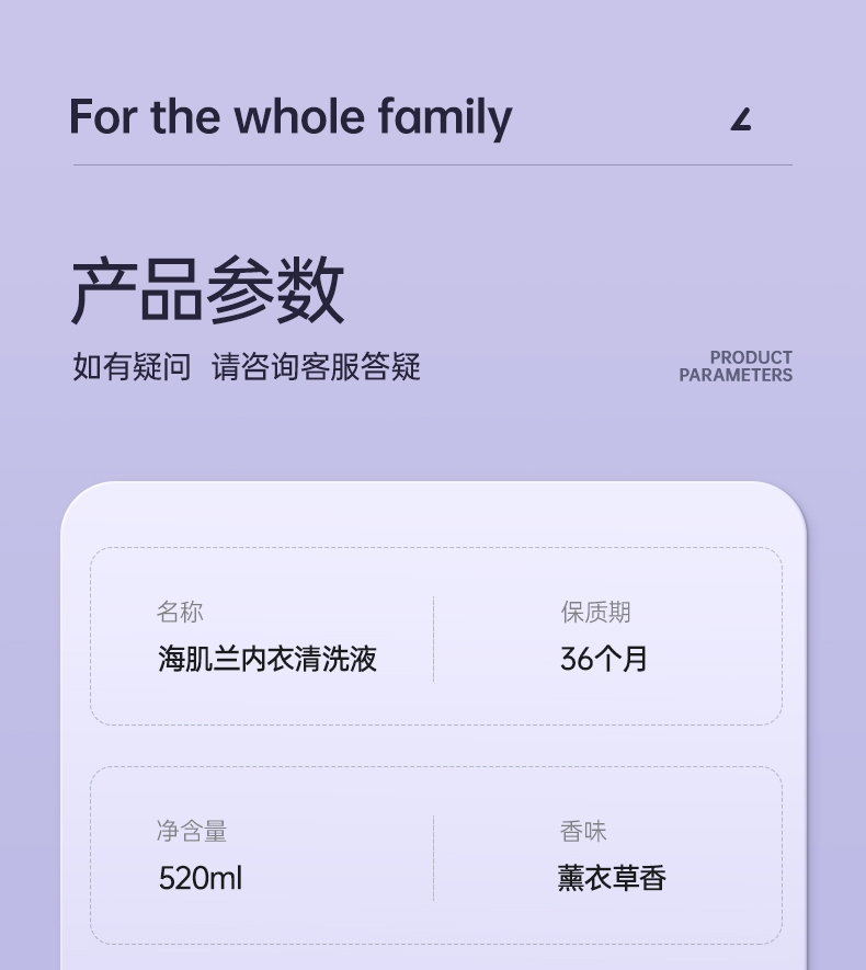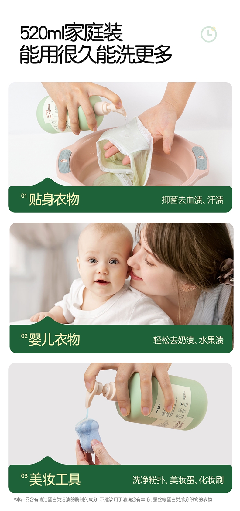 内清新升级更懂去污力;520m家庭装能用很久能洗更多;专洗内衣裤抑菌除螨