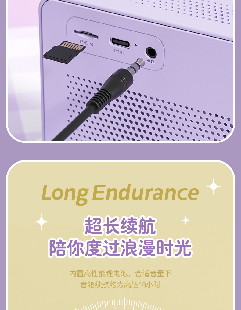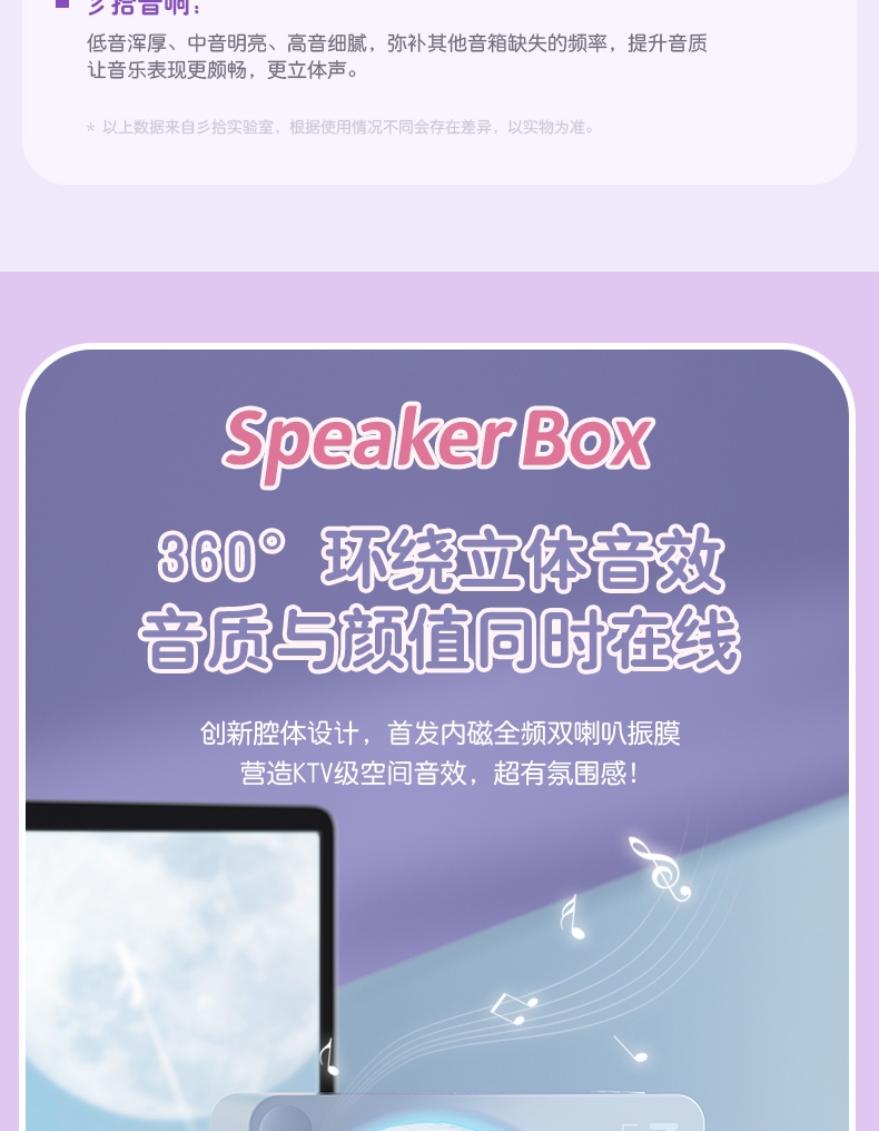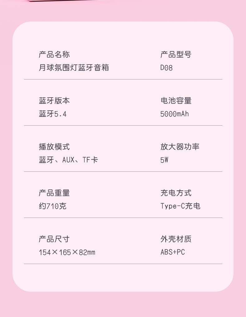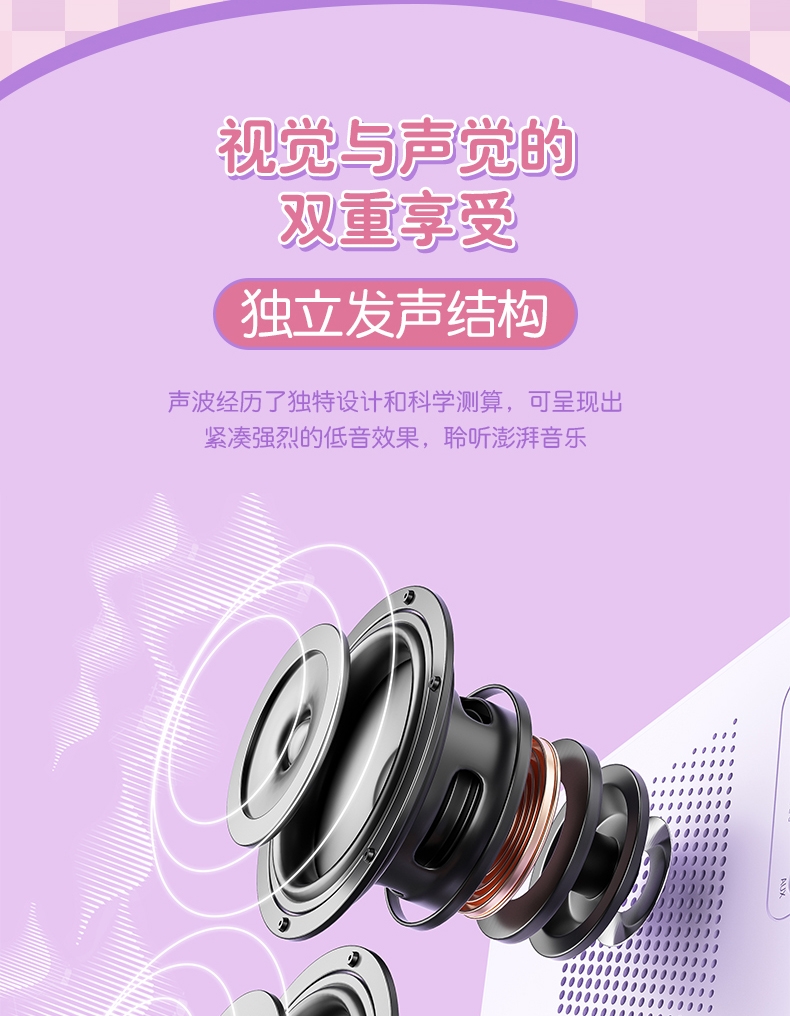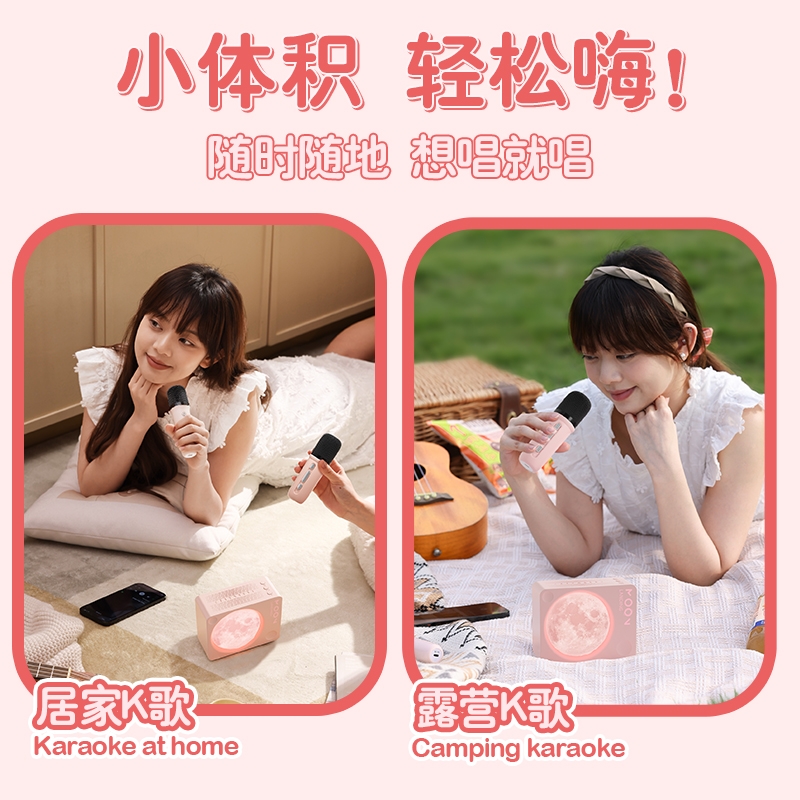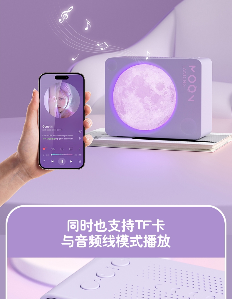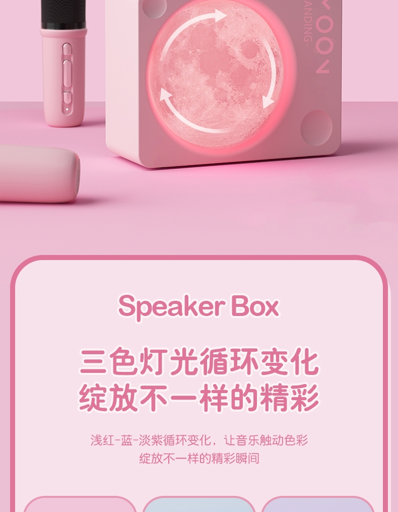 升级蓝牙5.4连接,稳定传输,抗干扰性强;温馨氛围灯,是音响也是摆件;高颜值MINI麦克风,细腻舒适握感
