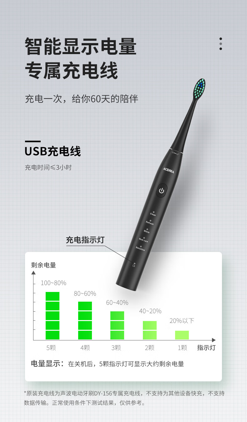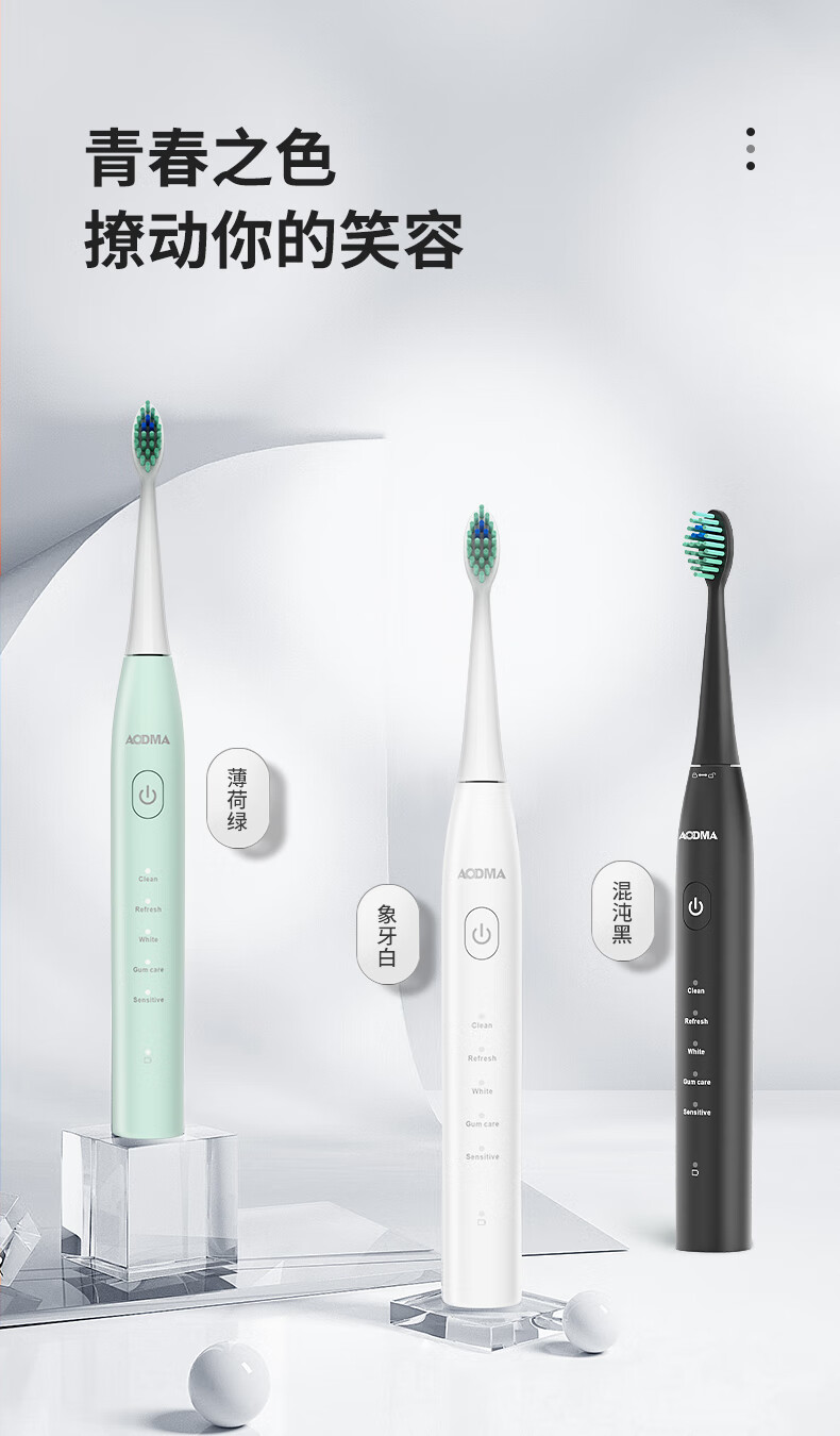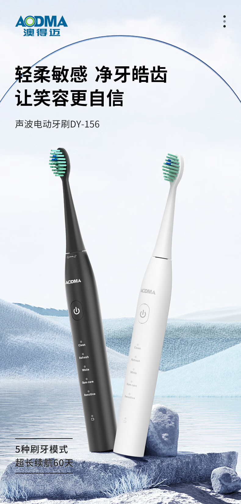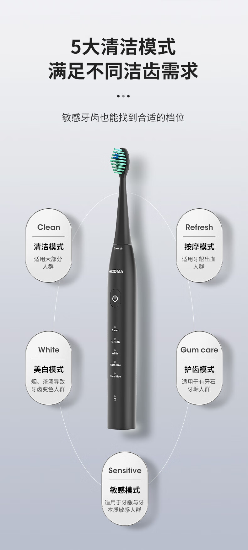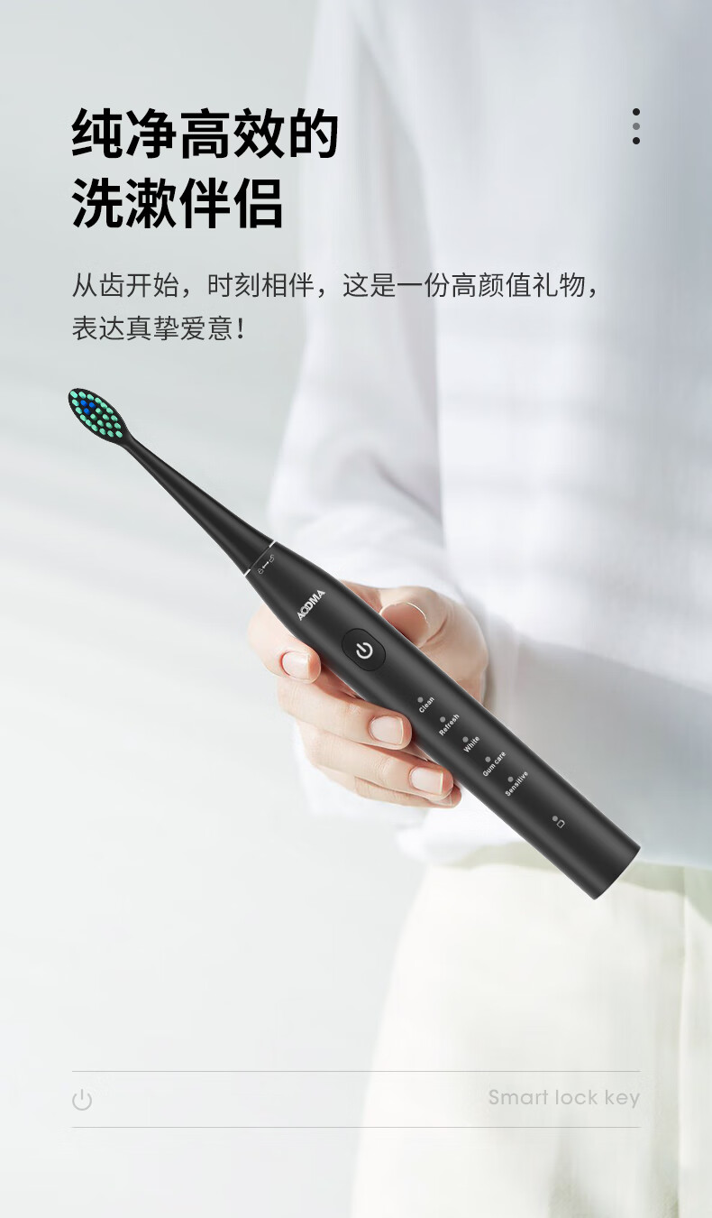 振动频率35000次/分钟,呵护牙齿健康;IPX7级防水,可全身水洗;2分钟自动关机,30秒智能提醒,记忆功能