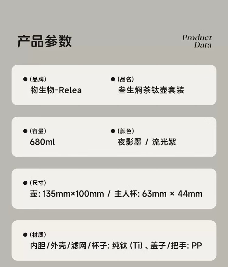 物生物 叁生焖茶钛壶套装JV022501-0680
