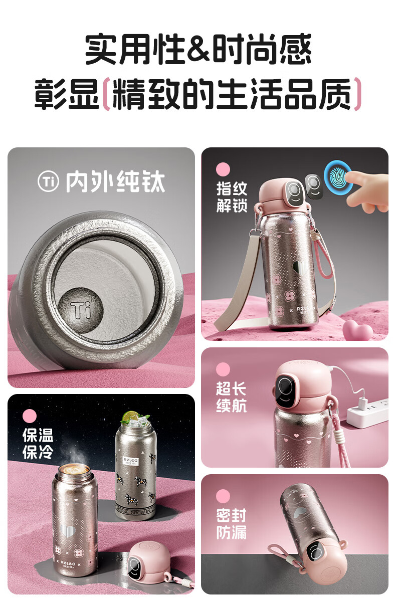 纯钛内胆,抑菌锁鲜;指纹解锁,快速识别;便携提手,强韧耐用