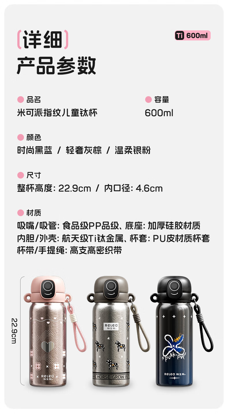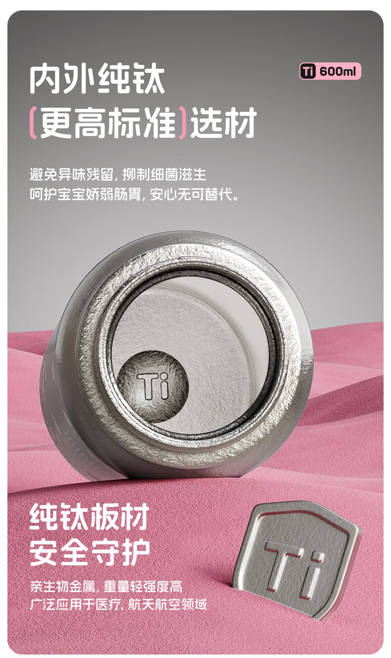 材质:纯钛内胆,食品级pp杯盖,硅胶