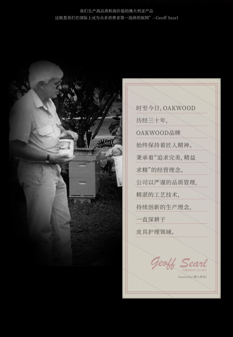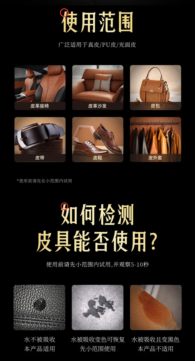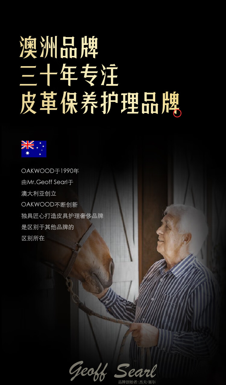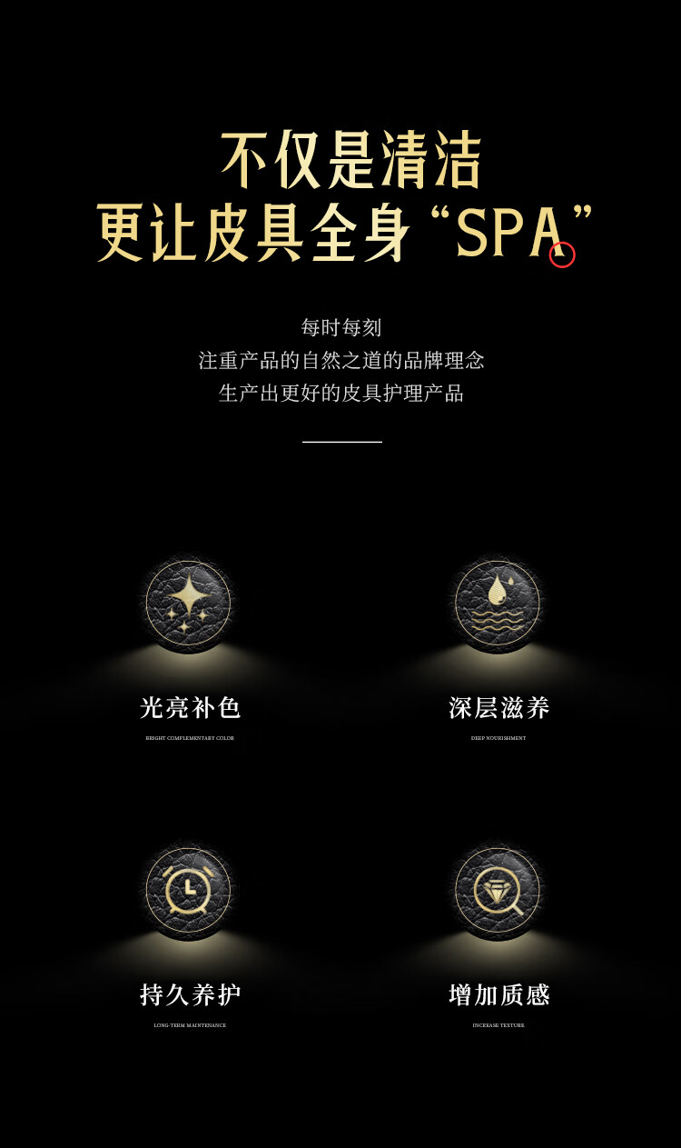 天然护肤级成分,补充皮具"胶原蛋白”;澳洲品牌,三十年专注,皮革保养护理品牌;自然配方是核心;中性温和配方不伤真皮;广泛适用于真皮/PU皮/光面皮