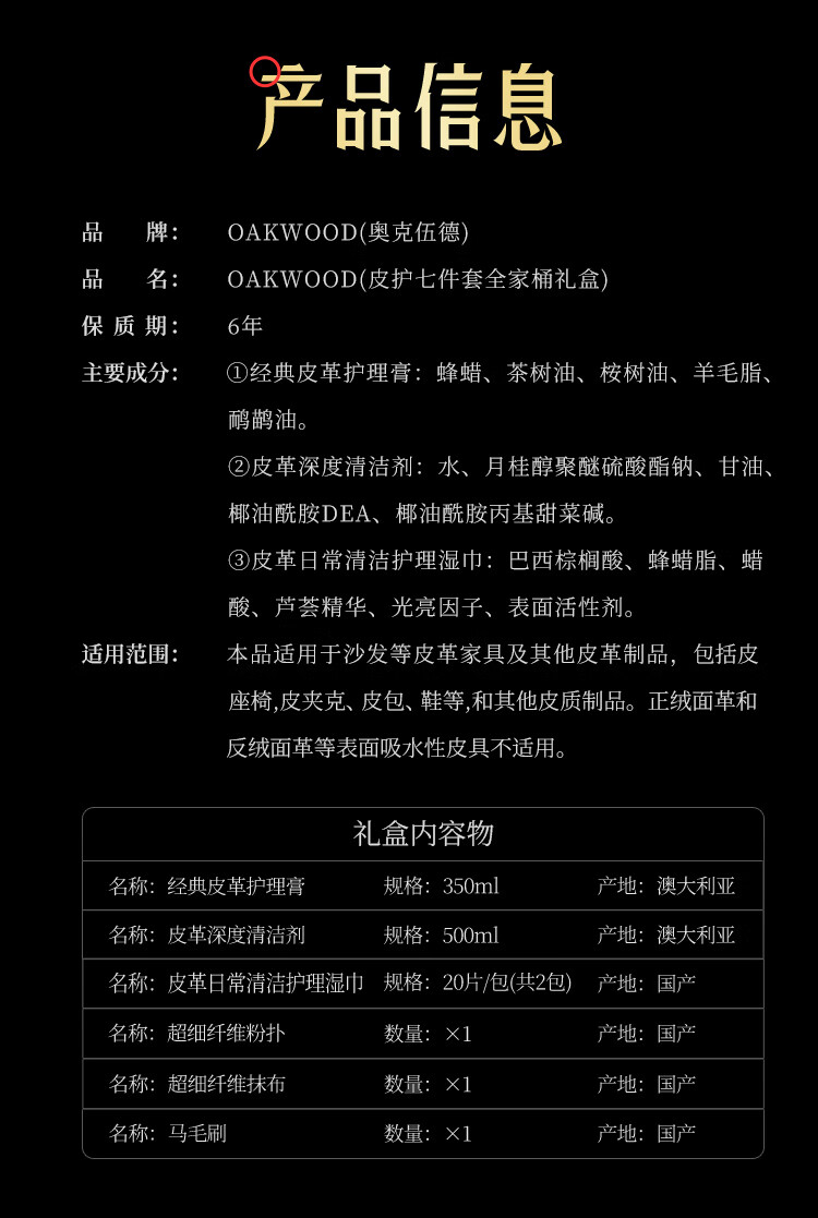 奥克伍德 澳洲进口皮革护理剂礼盒装OP-359