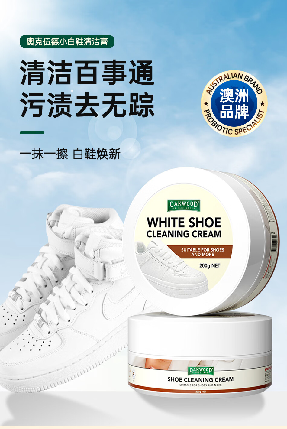 多样清洁 一盒搞定;一抹一擦 白鞋焕新;除菌抗菌 天然洁净