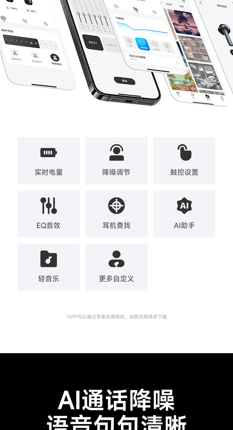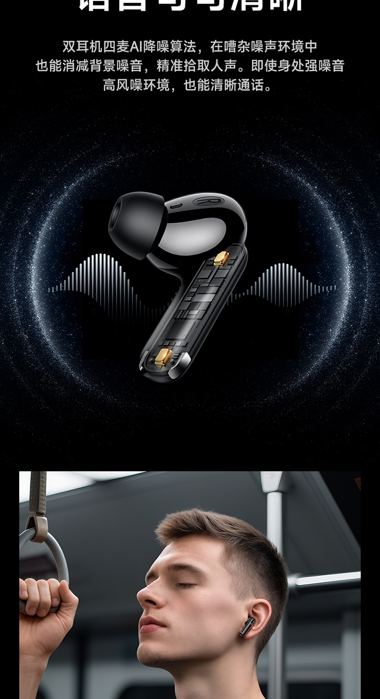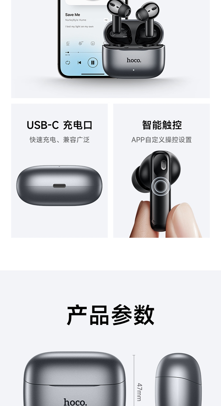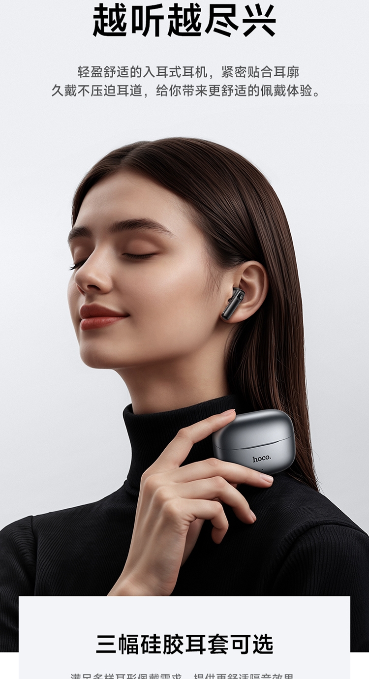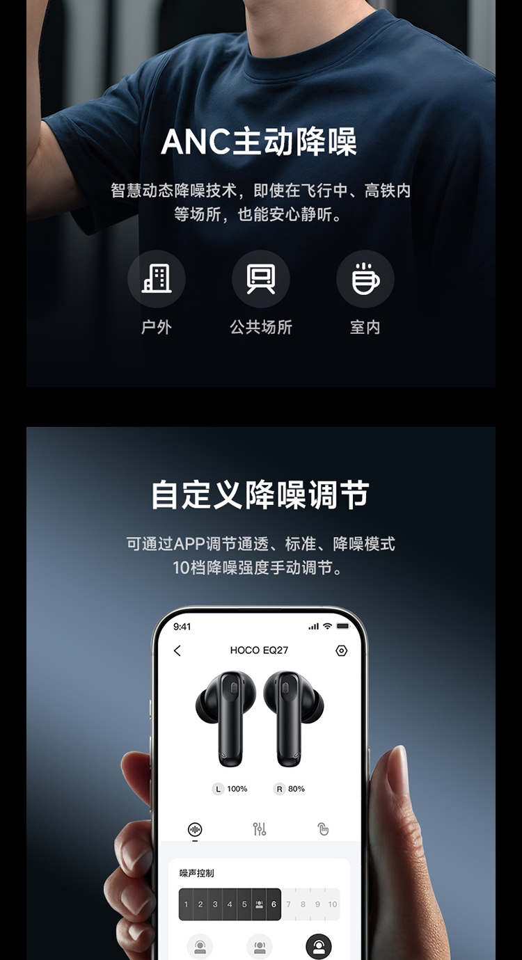 浩酷首款智能AI翻译耳机;搭配hoco.music APP使用可获得更多功能;支持ANC+ENC降噪