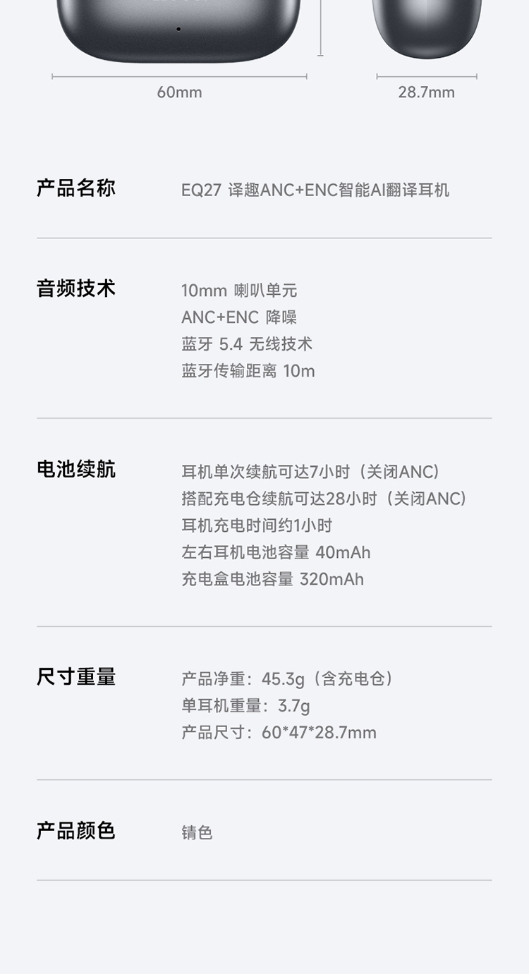浩酷 译趣ANC+ENC智能AI翻译耳机