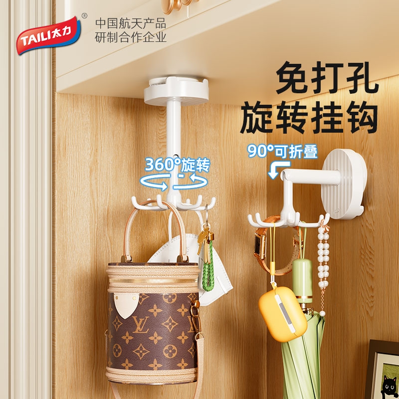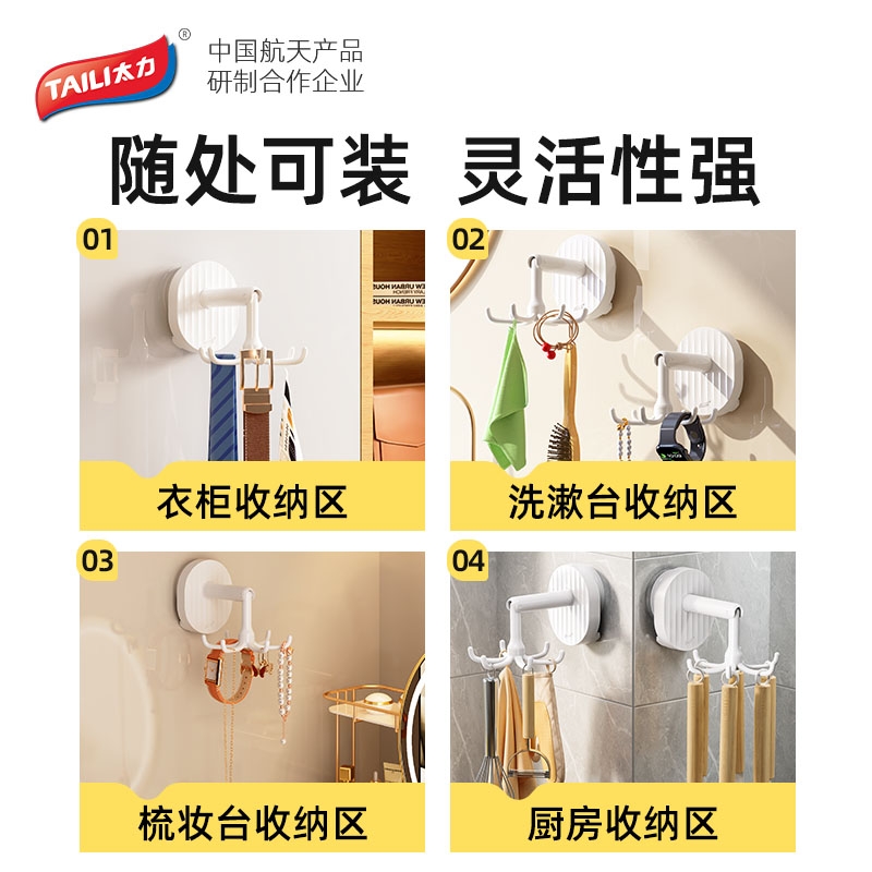 北欧简约风,可旋转挂钩,一按上墙,挂物无需等;一秒安装,即装即用,免粘胶,免打孔;利吸盘 章鱼吸盘仿生技术 吸力超持久 承重6斤;真空贴合墙面,潮湿也不掉落;环形6挂钩 省6倍空间 浴室收纳 厨房收纳