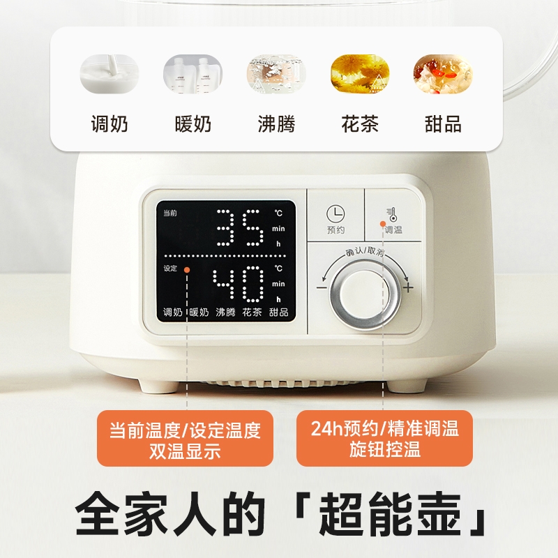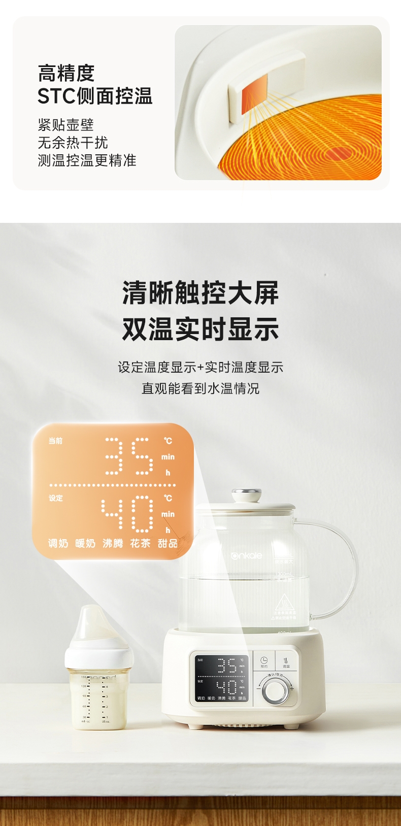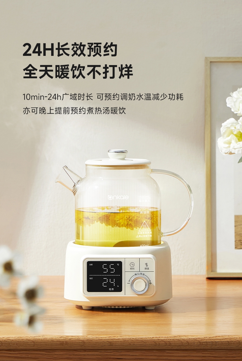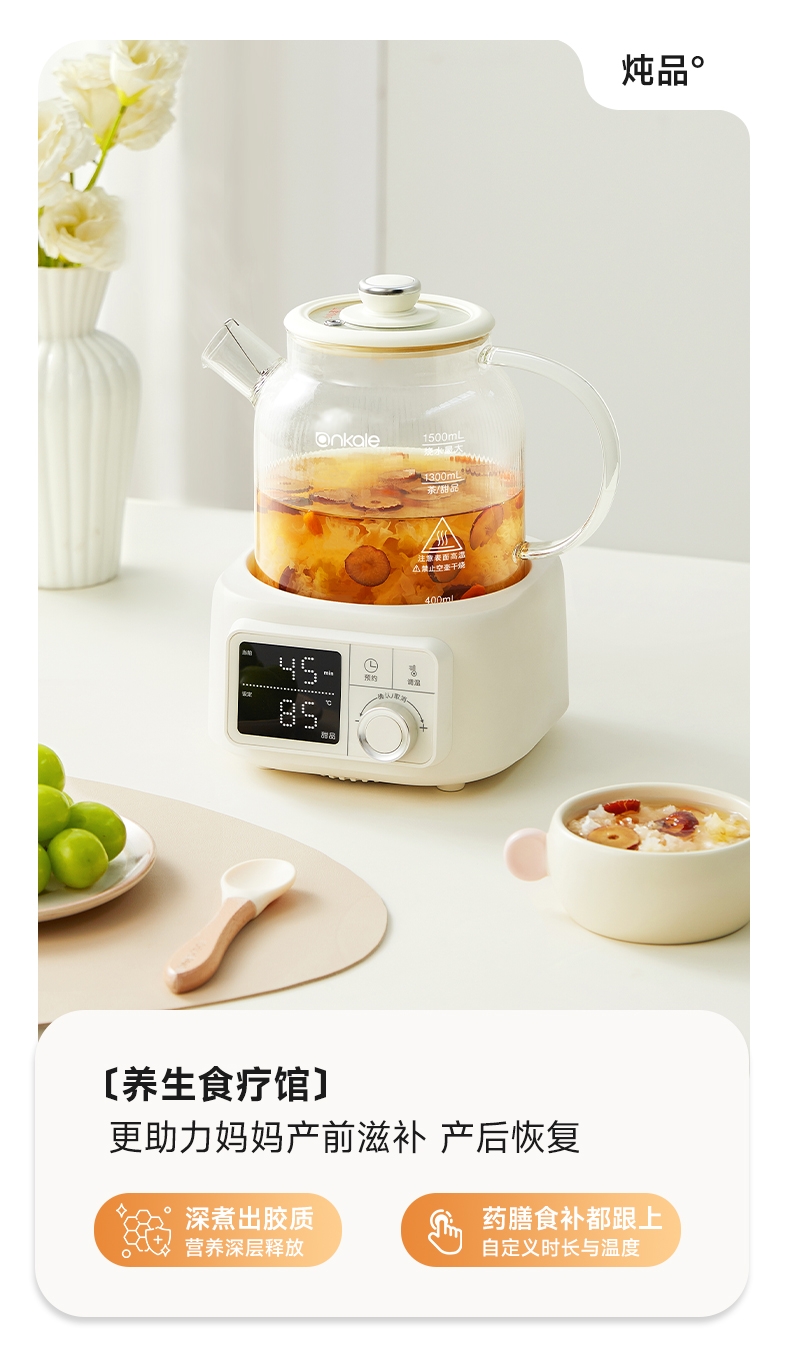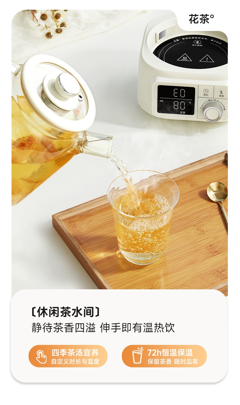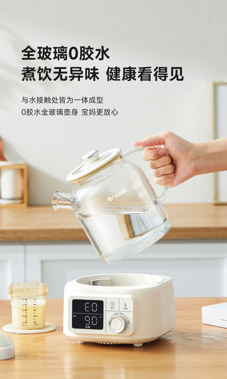 大字体双数码显示;全高硼硅玻璃材质;电陶炉发热盘加热