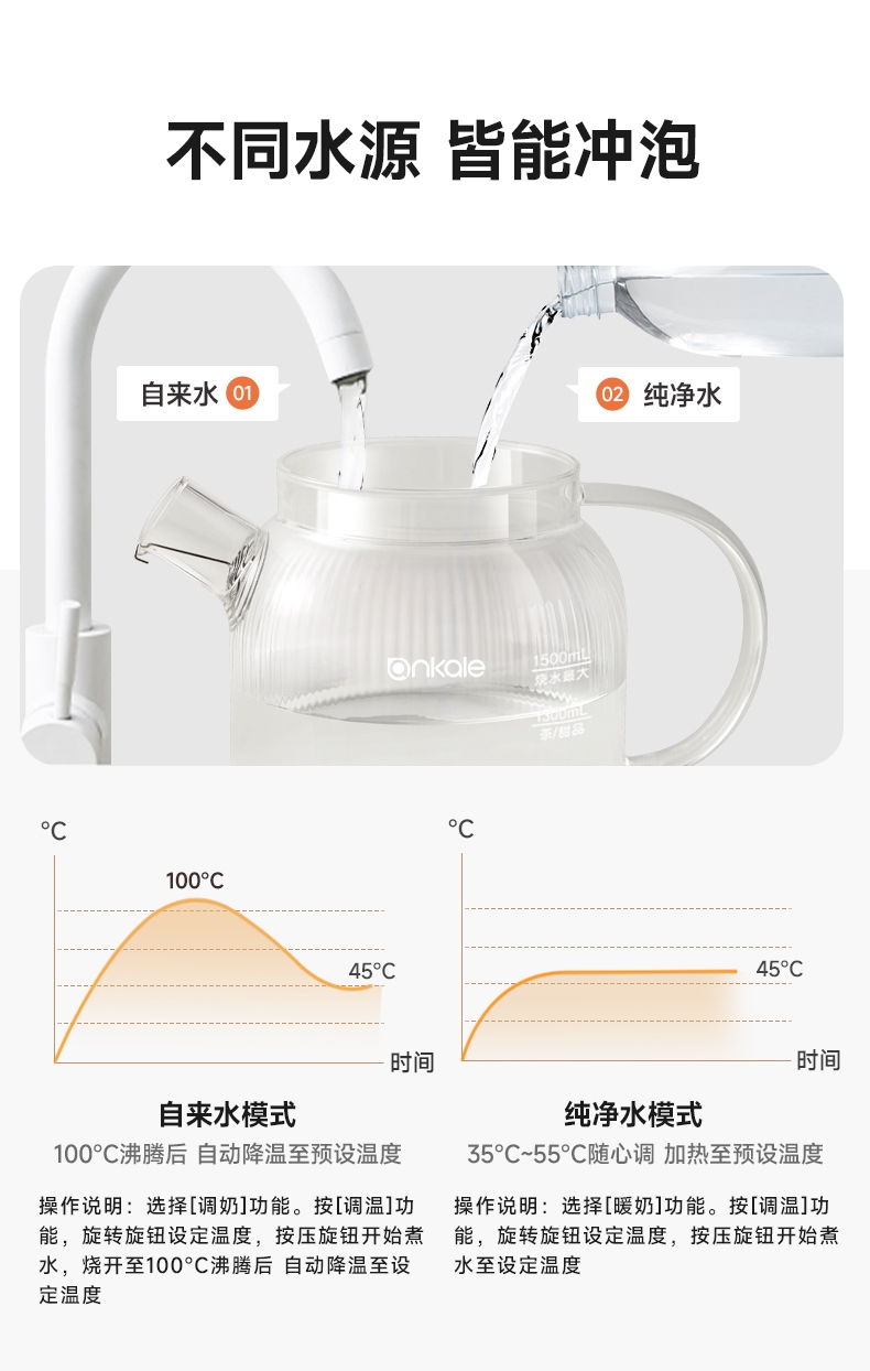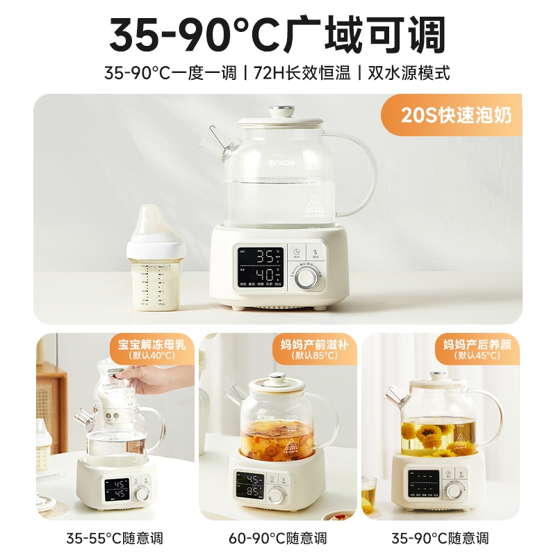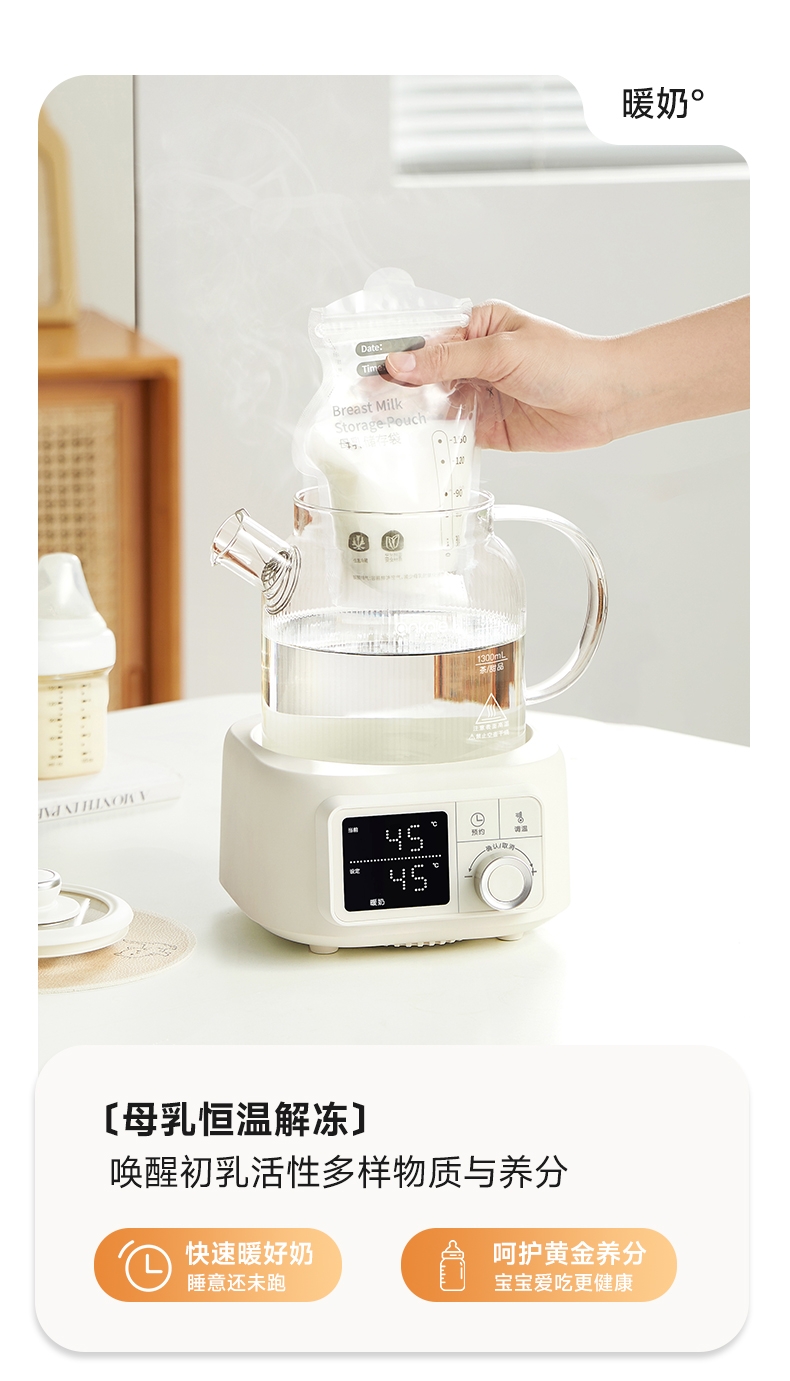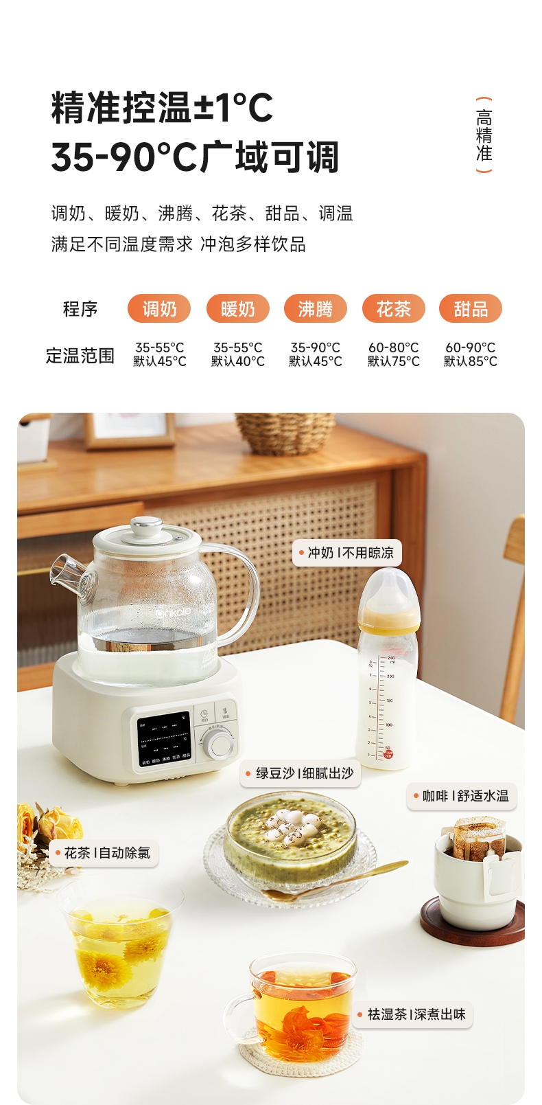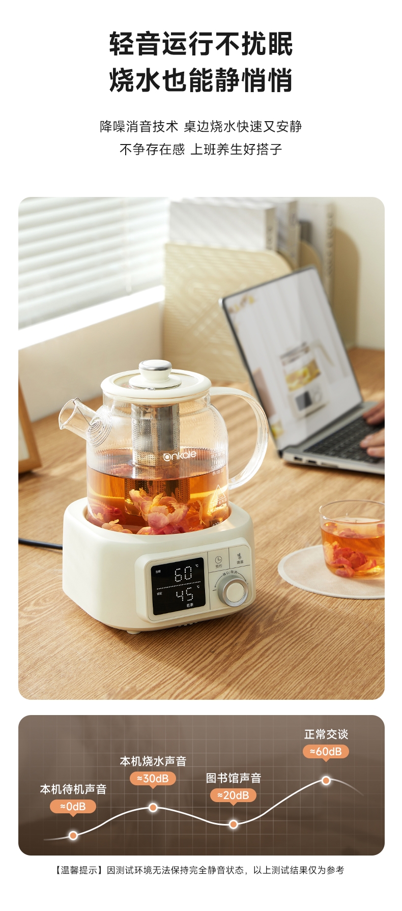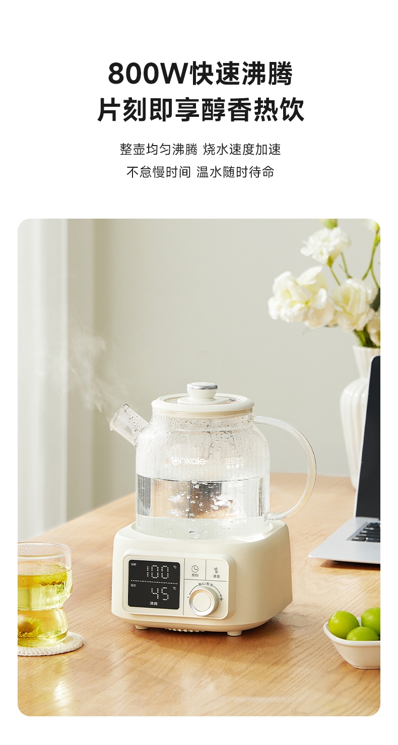 大字体双数码显示;全高硼硅玻璃材质;电陶炉发热盘加热