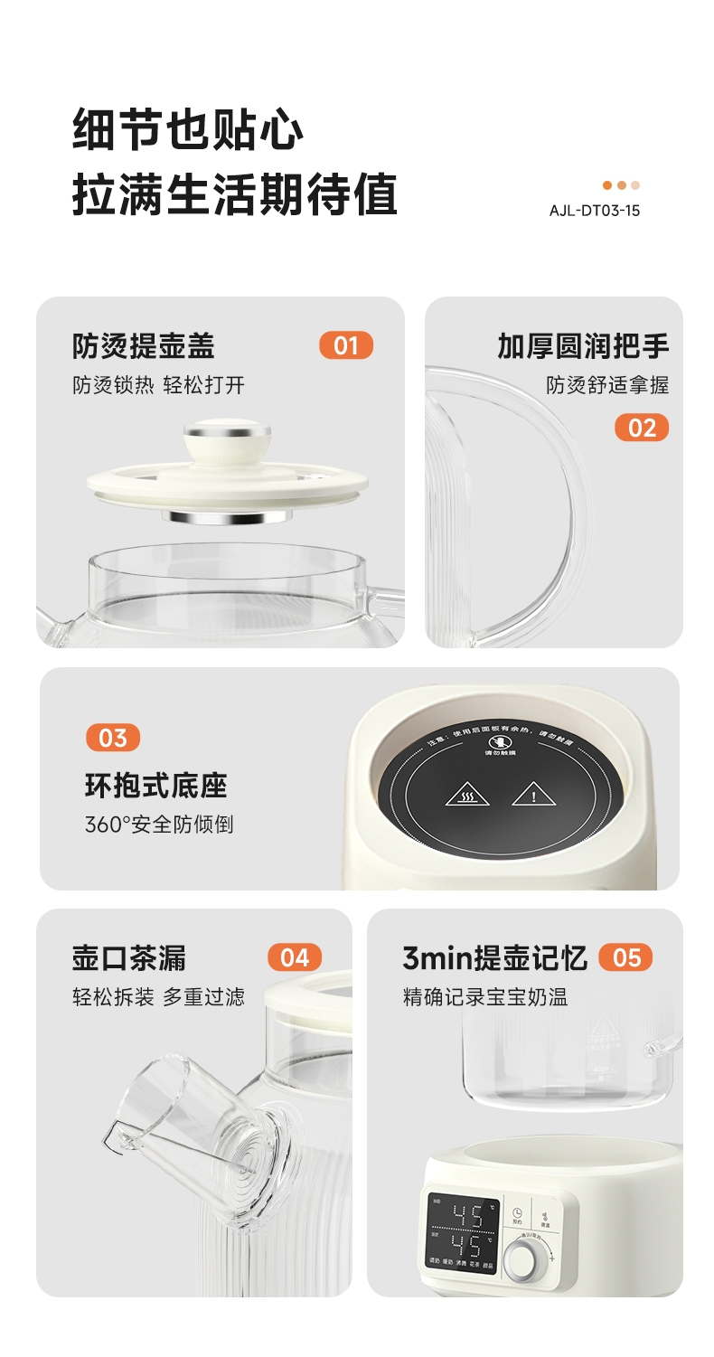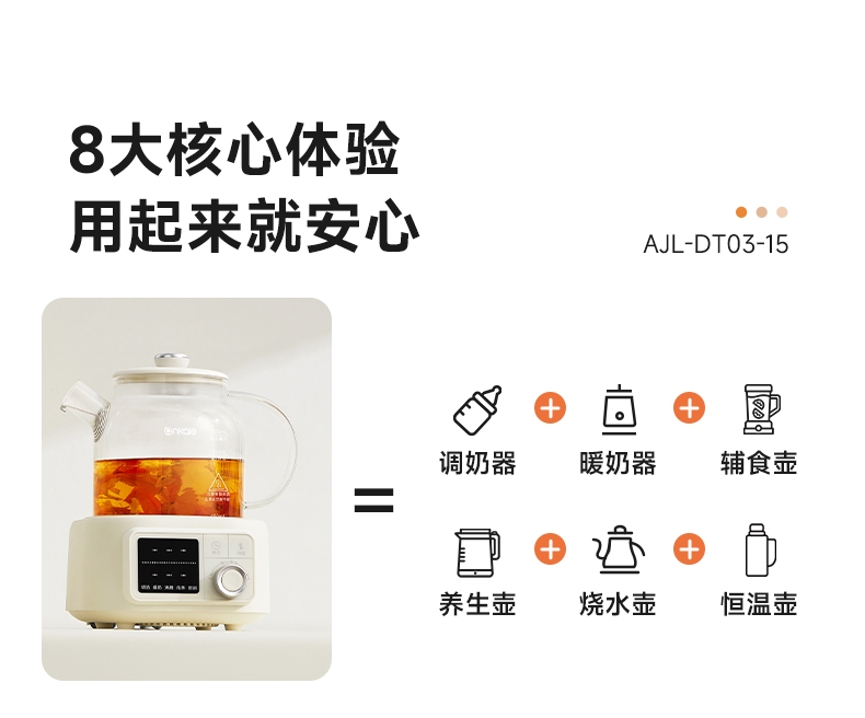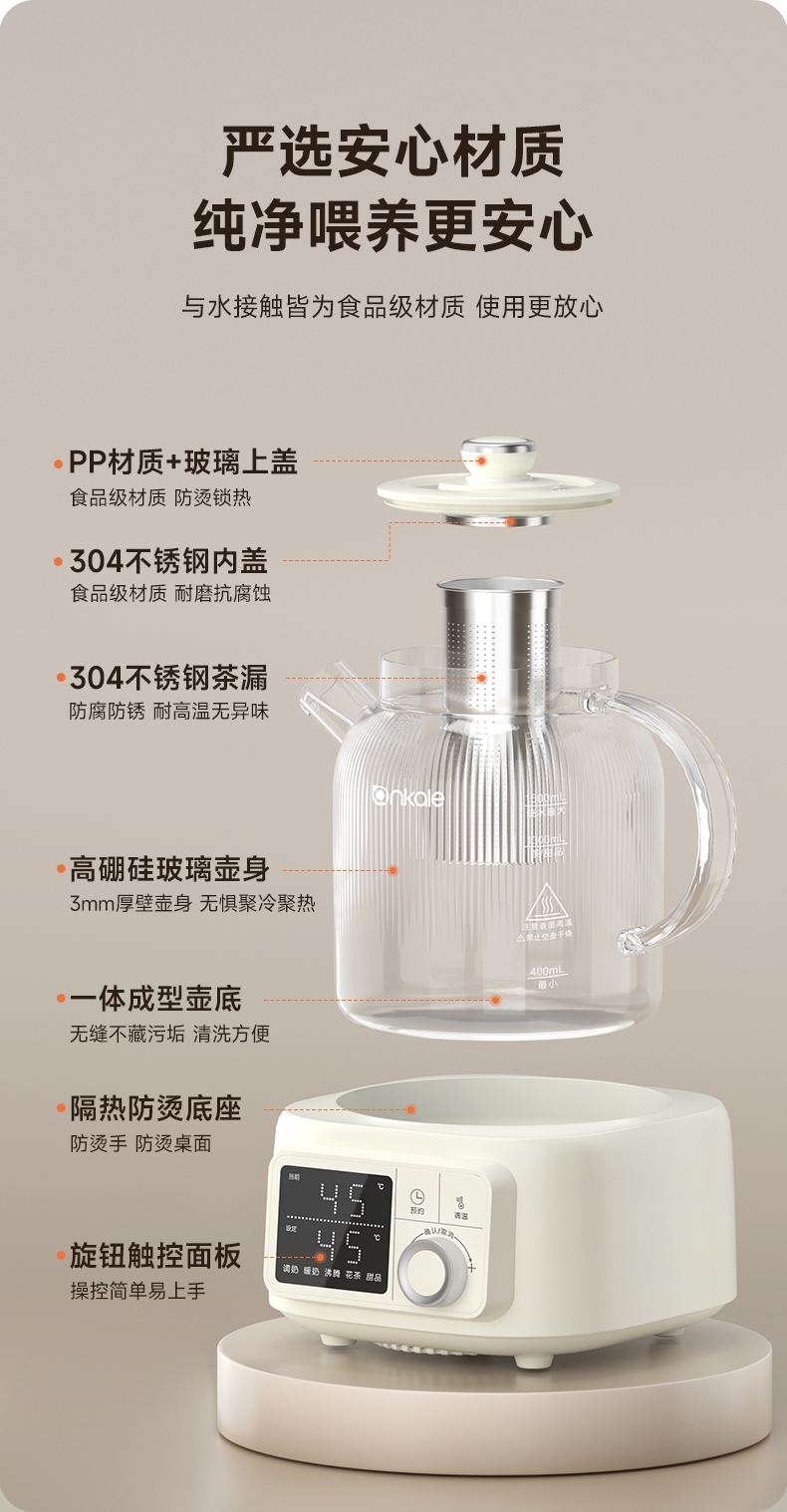 ankale 全玻璃0胶水养生壶AJL-DT03-15