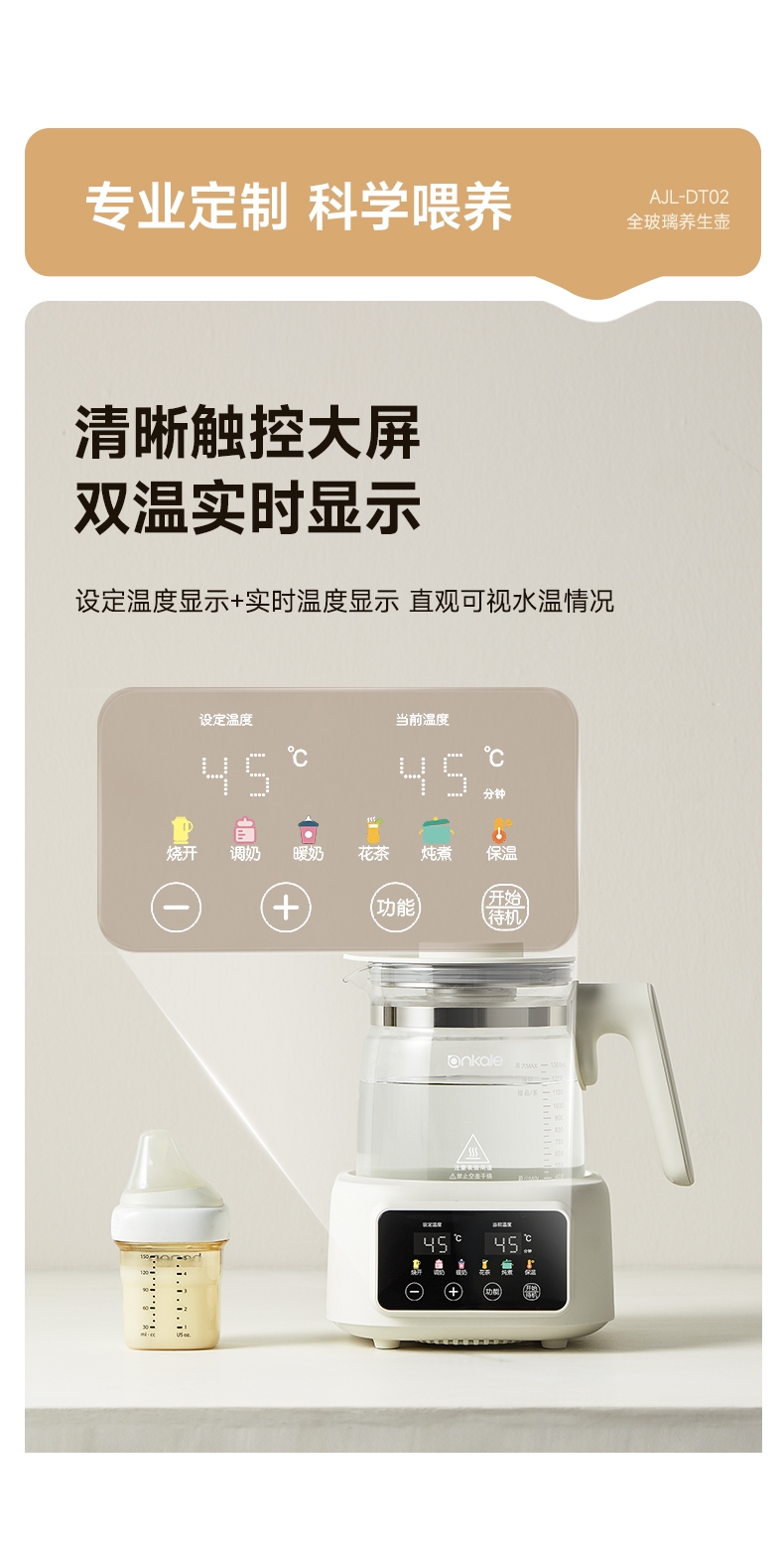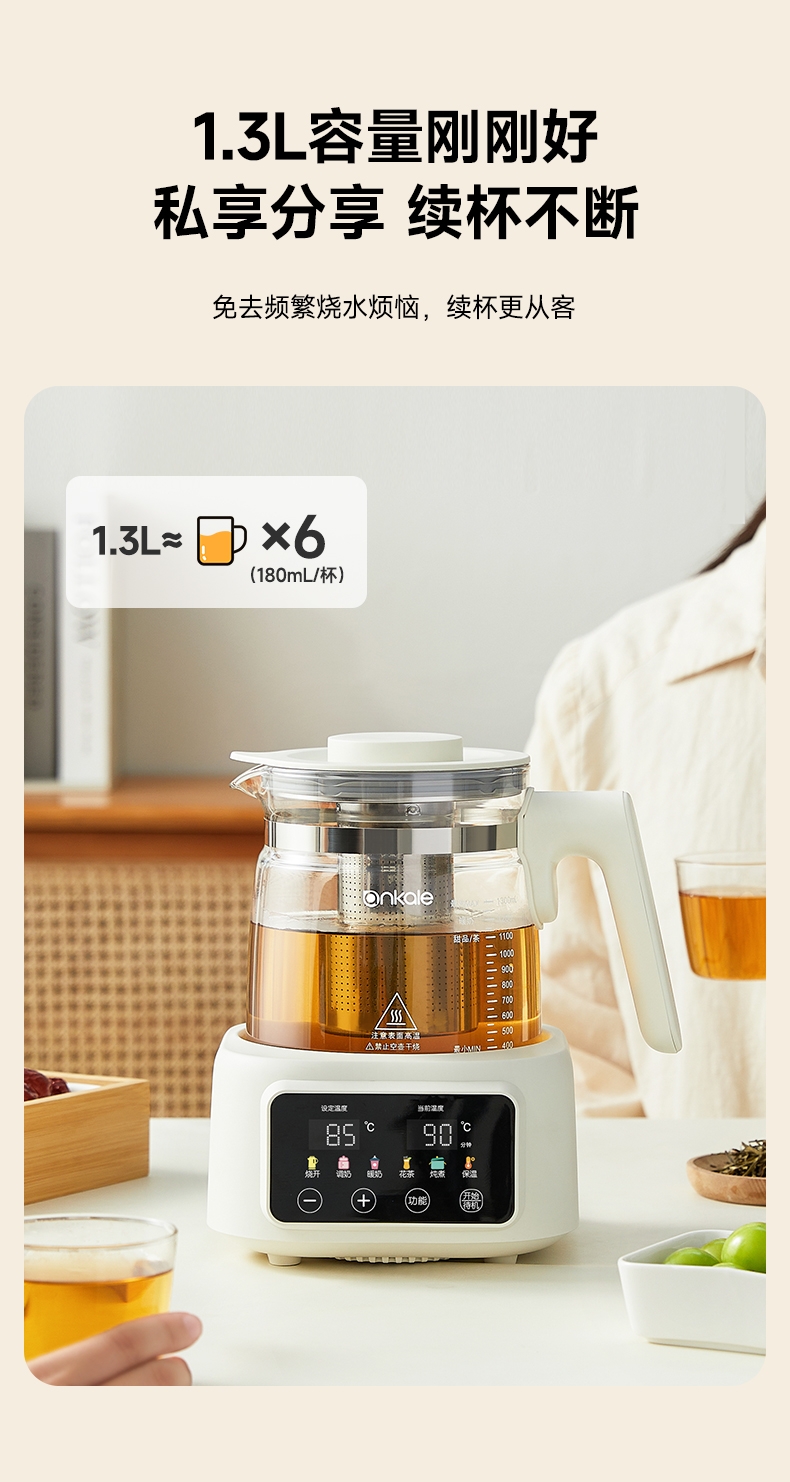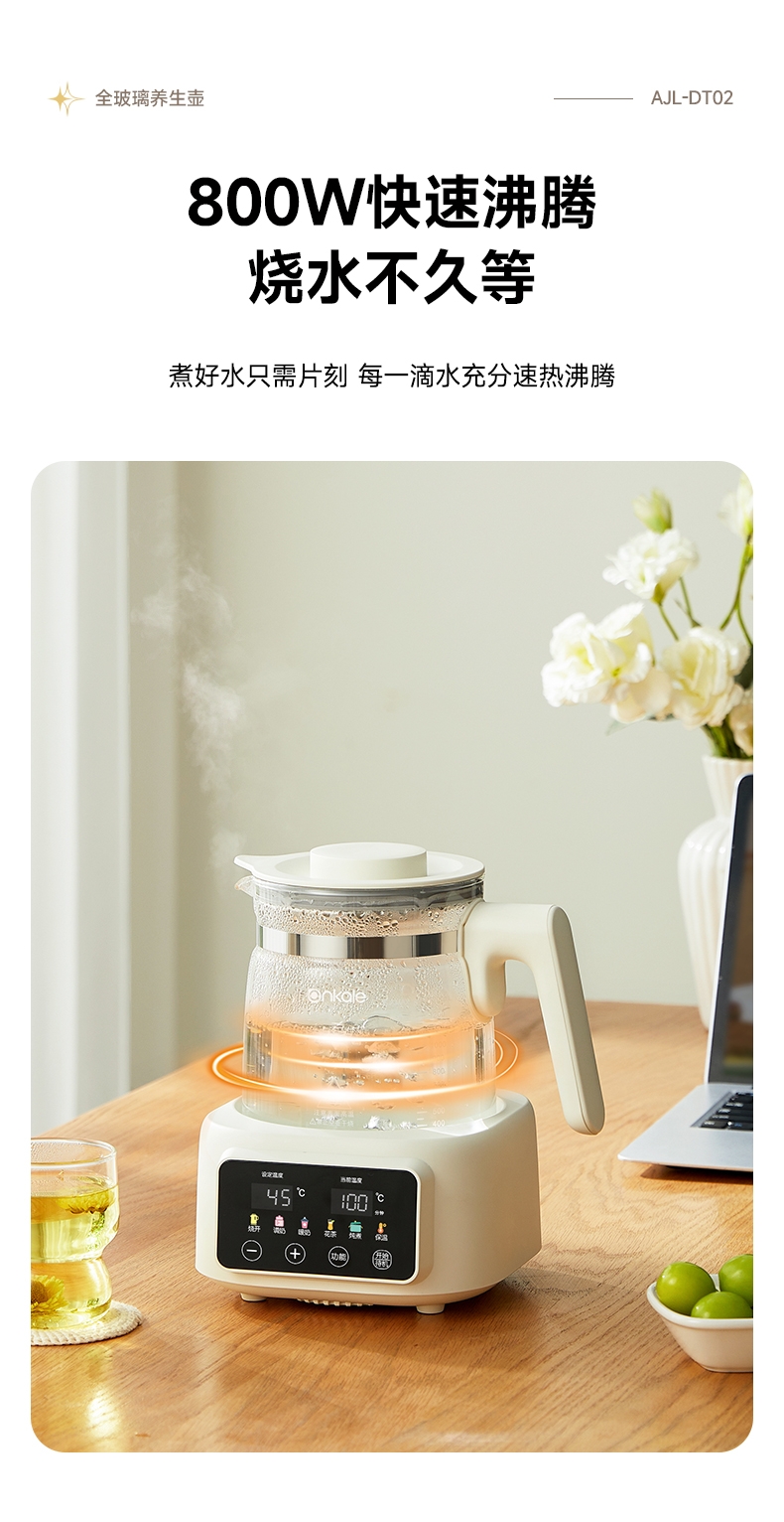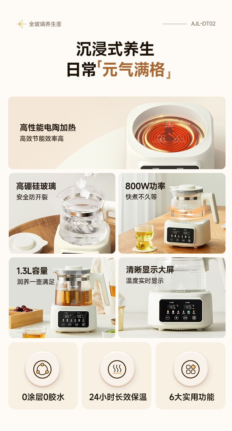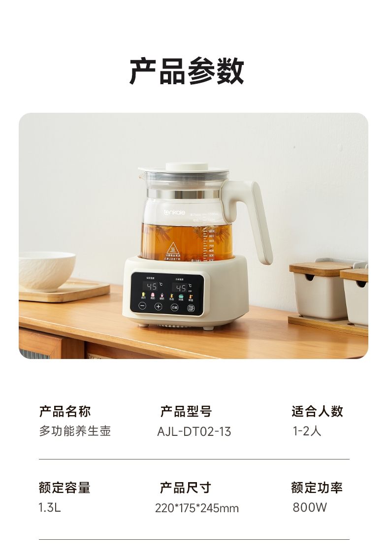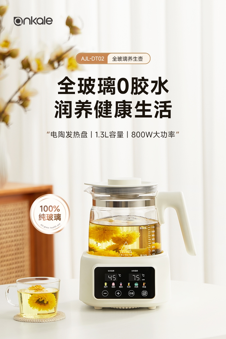 ankale 全玻璃0胶水恒温多功能养生壶AJL-DT02-13