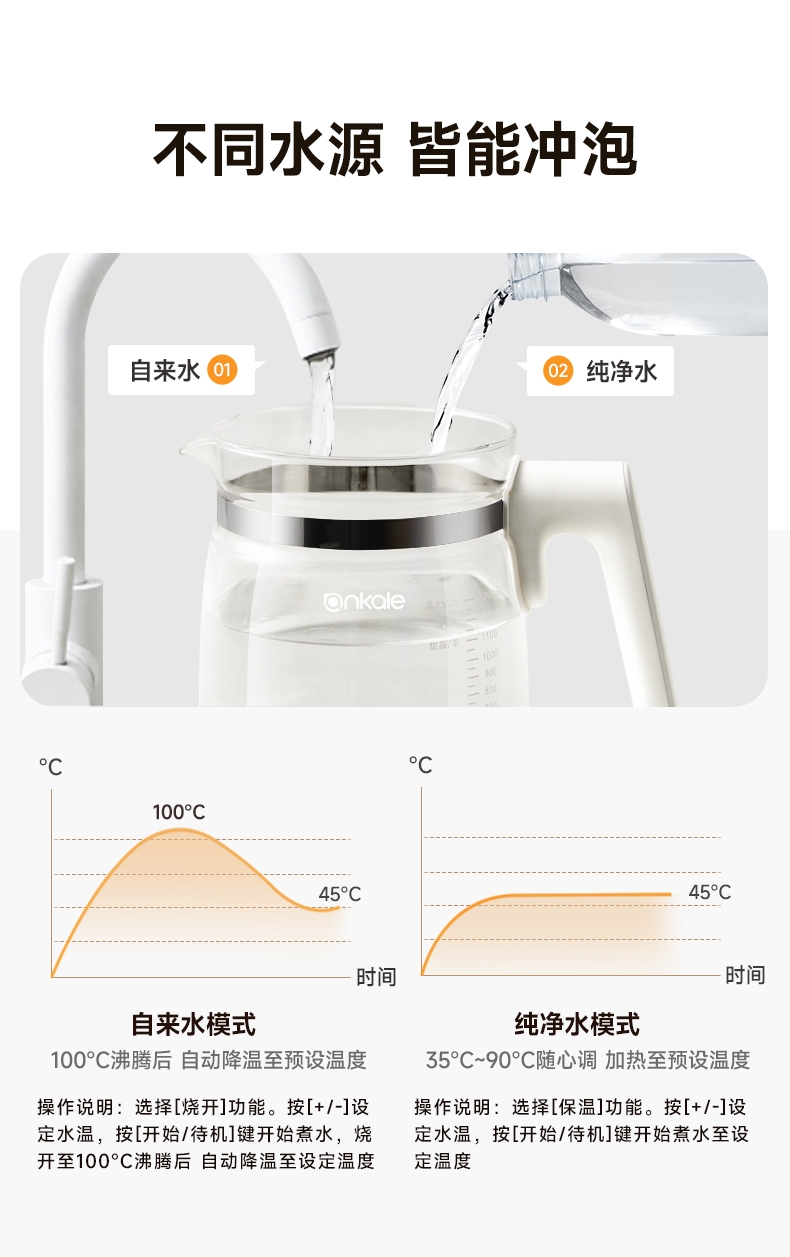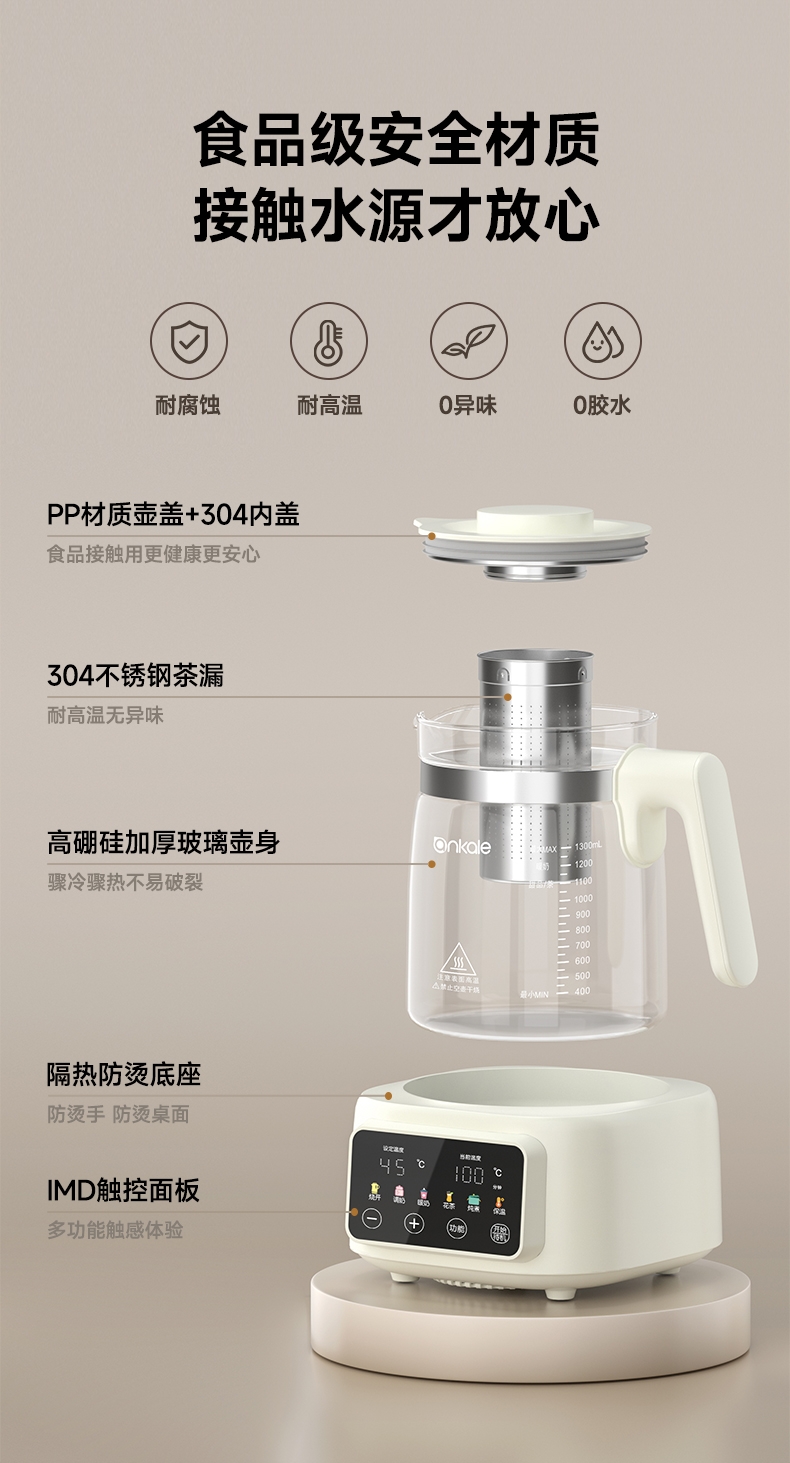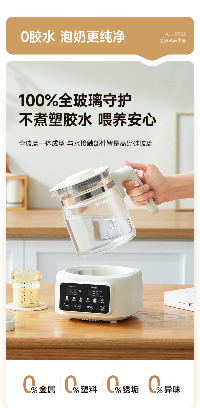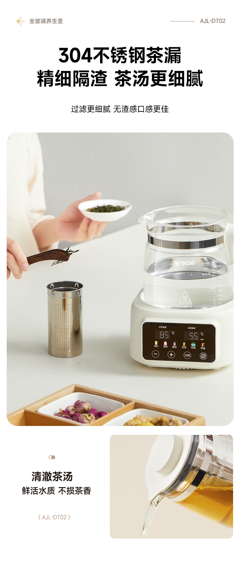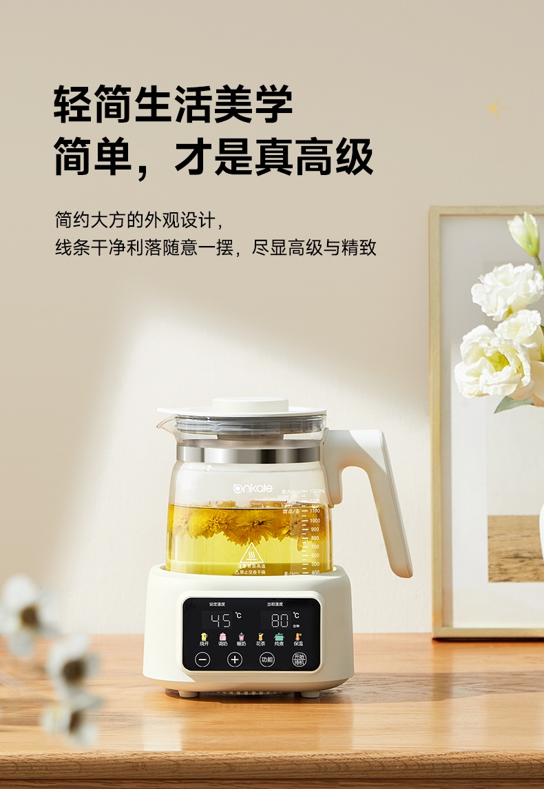 ankale 全玻璃0胶水恒温多功能养生壶AJL-DT02-13