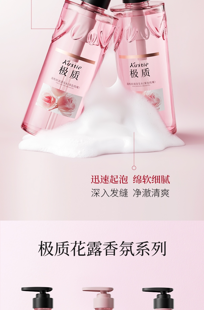 内护头皮 外蓬发丝;绵软细腻泡沫 温和洗净油脂;深入发缝 净澈清爽