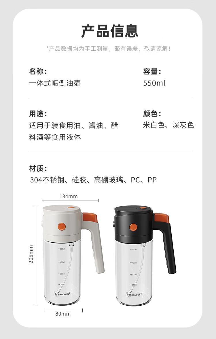 乐扣乐扣 乐扣喷油壶喷倒一体雾化不挂油CKO211