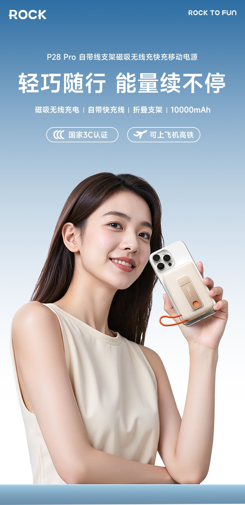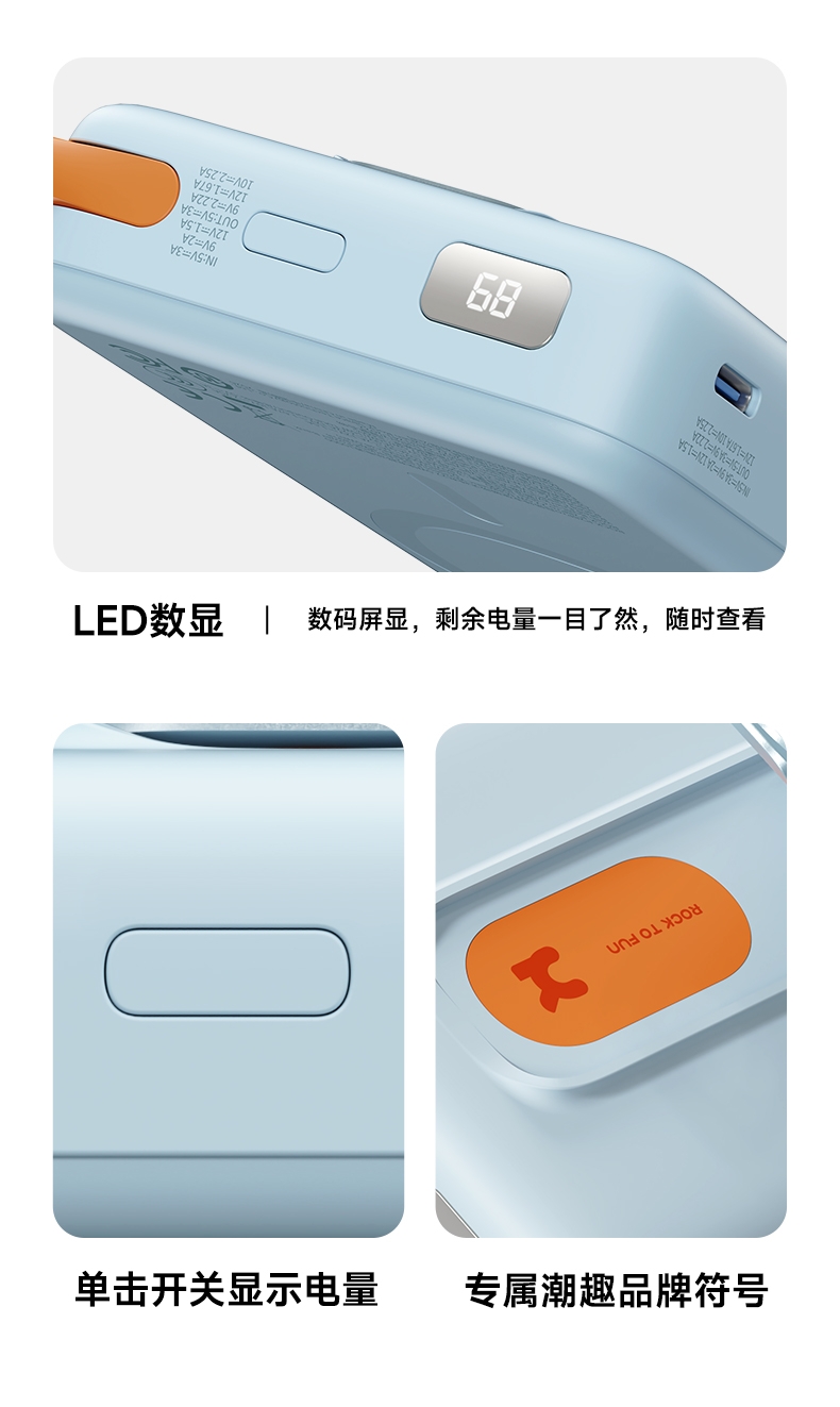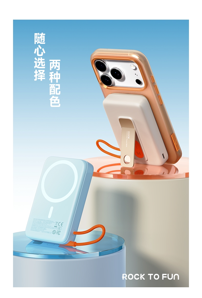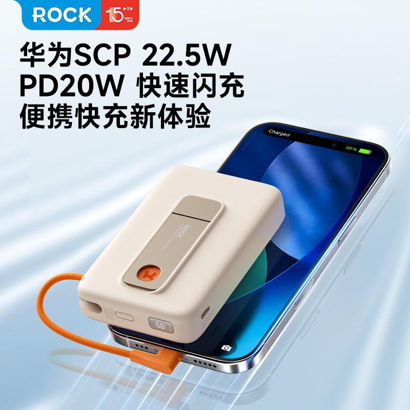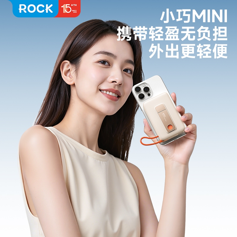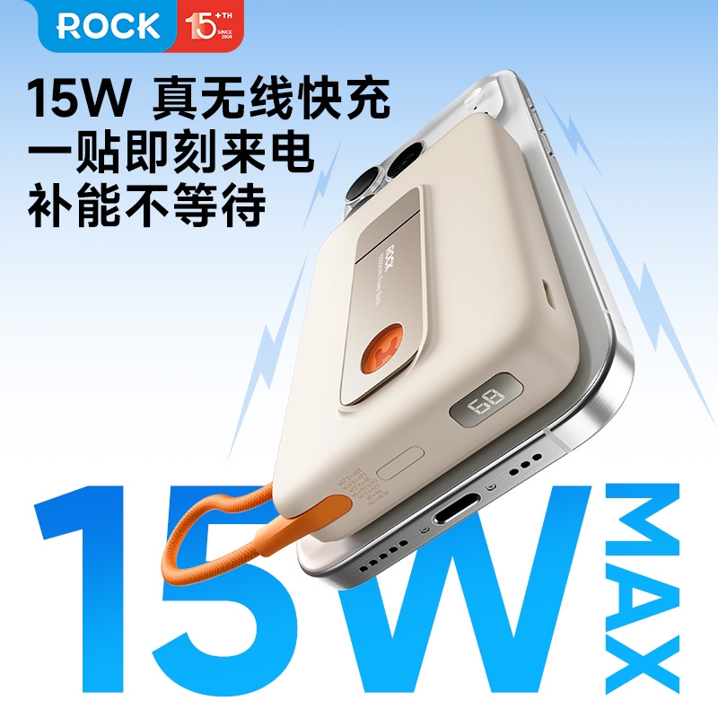 ROCK 自带线支架磁吸无线充移动电源HQW032