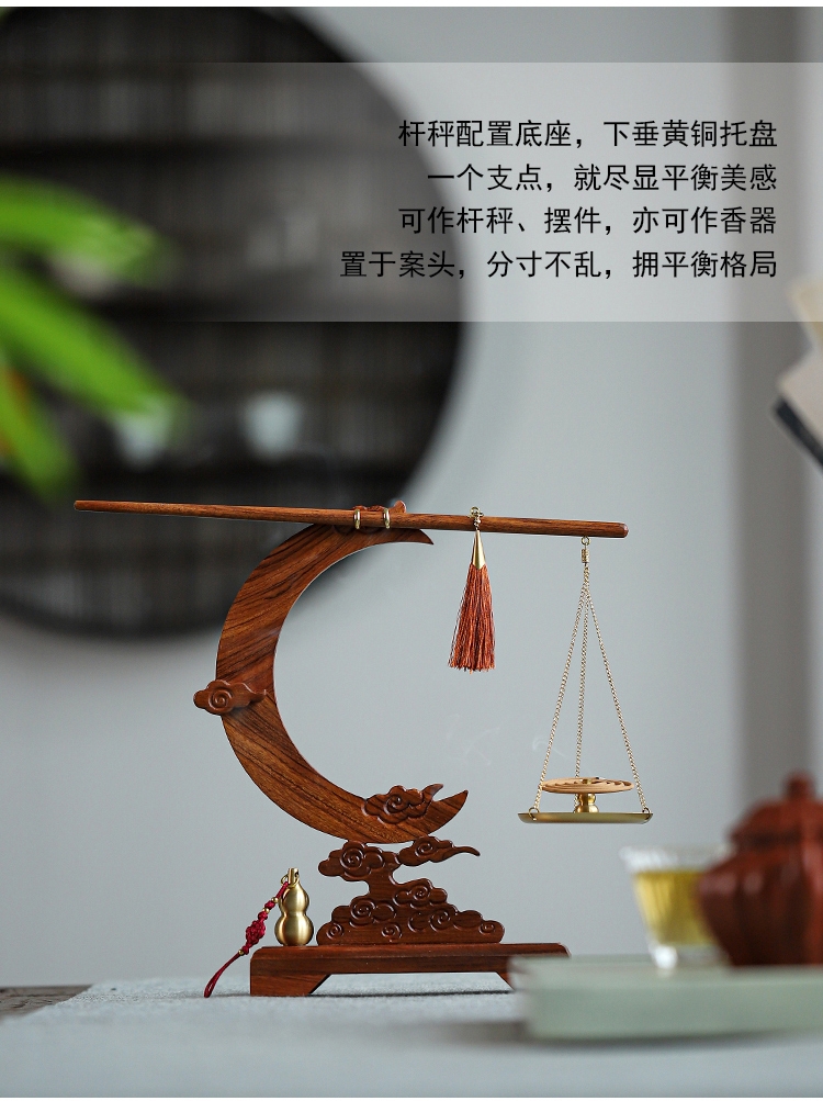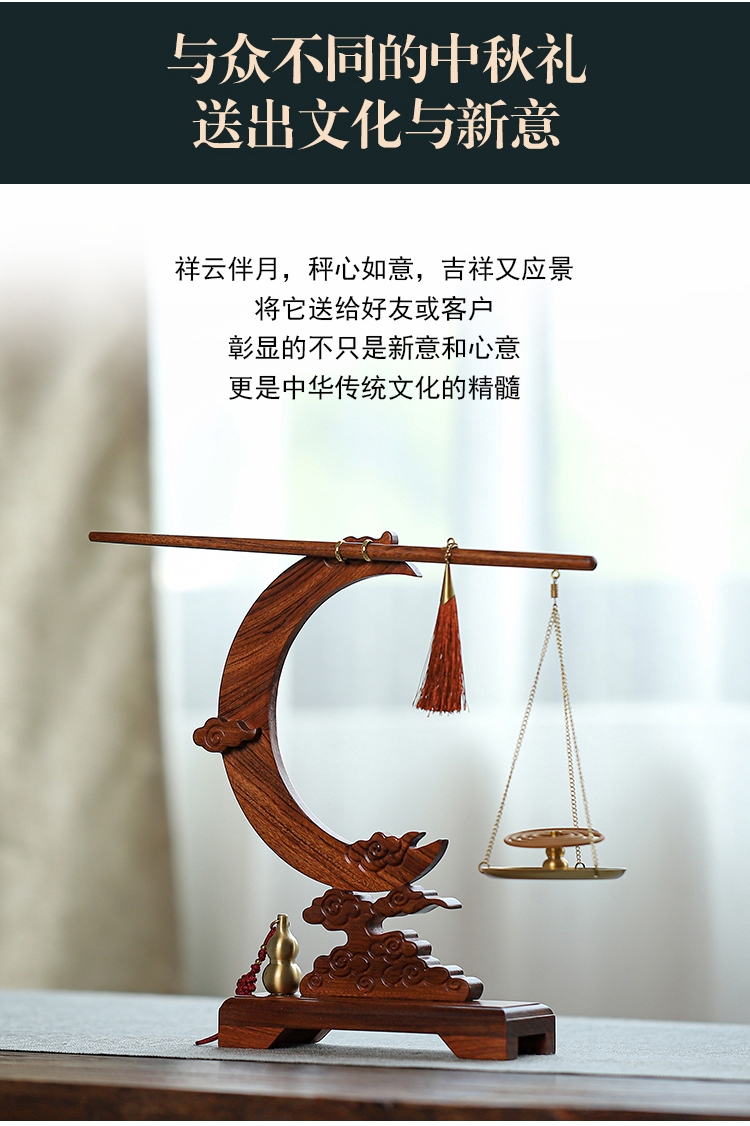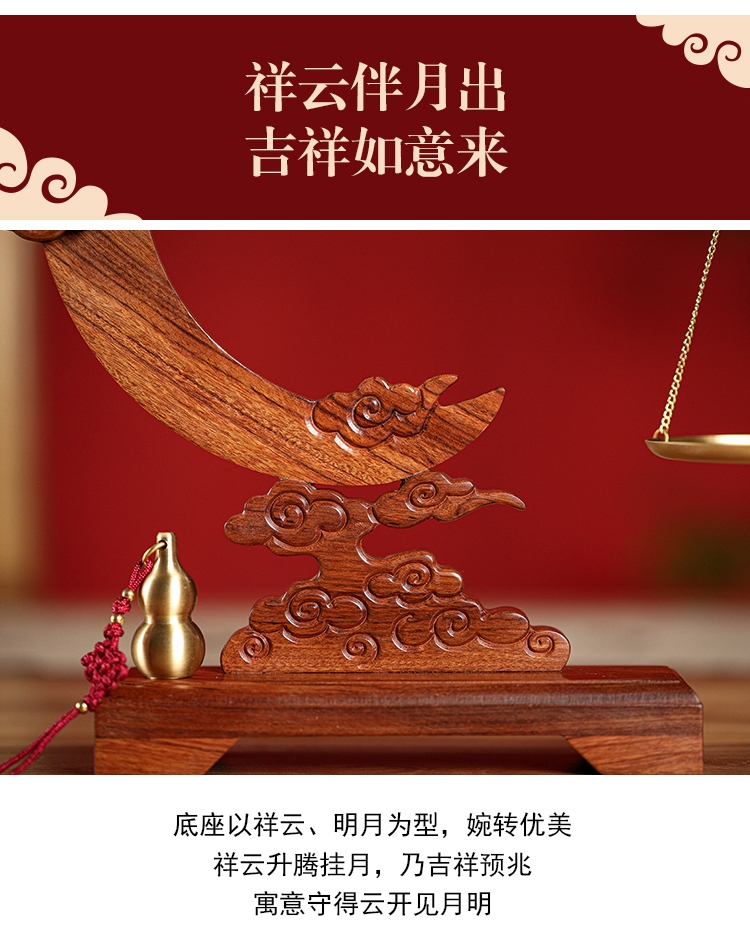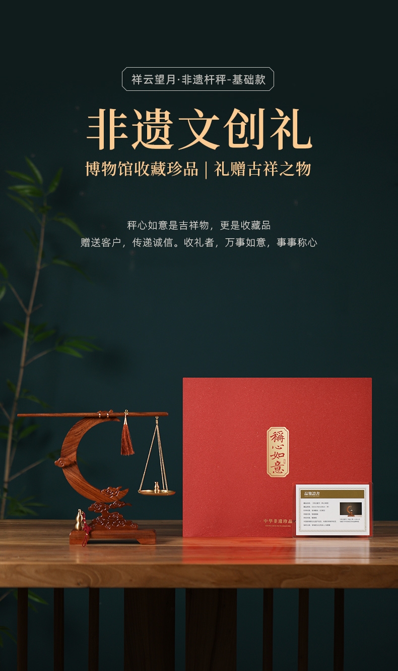 配置:① 非遗手工红木杆秤×1套(黄铜秤盘丨收藏证书丨文化手册) ② 祥云望月·红木底座×1个 ③ 葫芦香插×1个 ④ 中式盘香×6包 ⑤ 精致礼盒手袋×1套