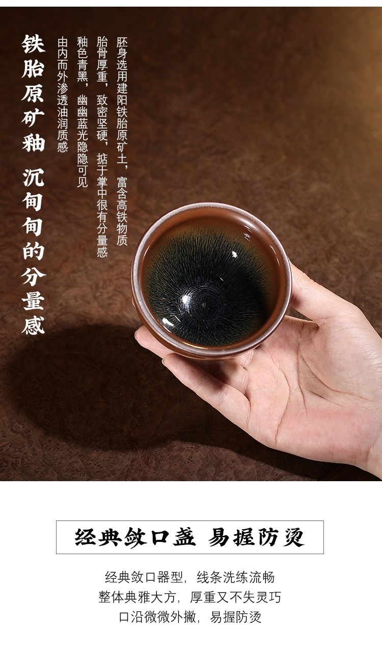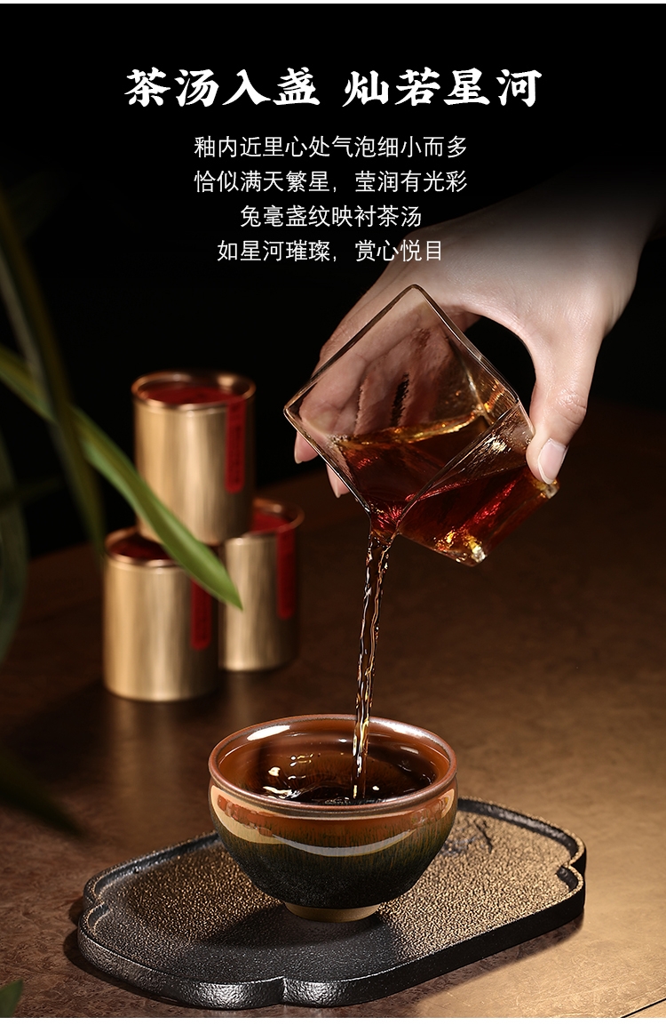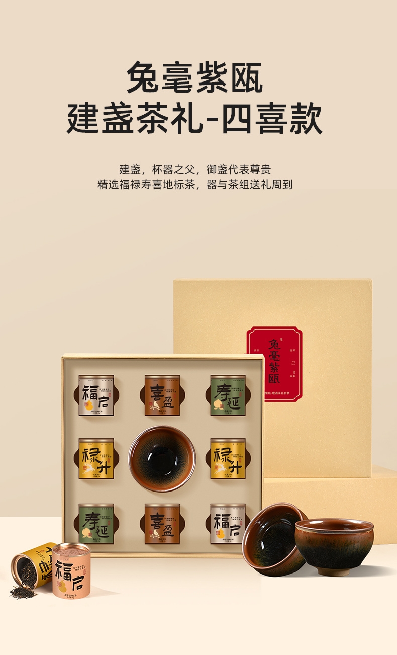 建盏,杯器之父,御盏代表尊贵;精选福禄寿喜地标茶,器与茶组送礼周到;经典敛口盏易握防烫
