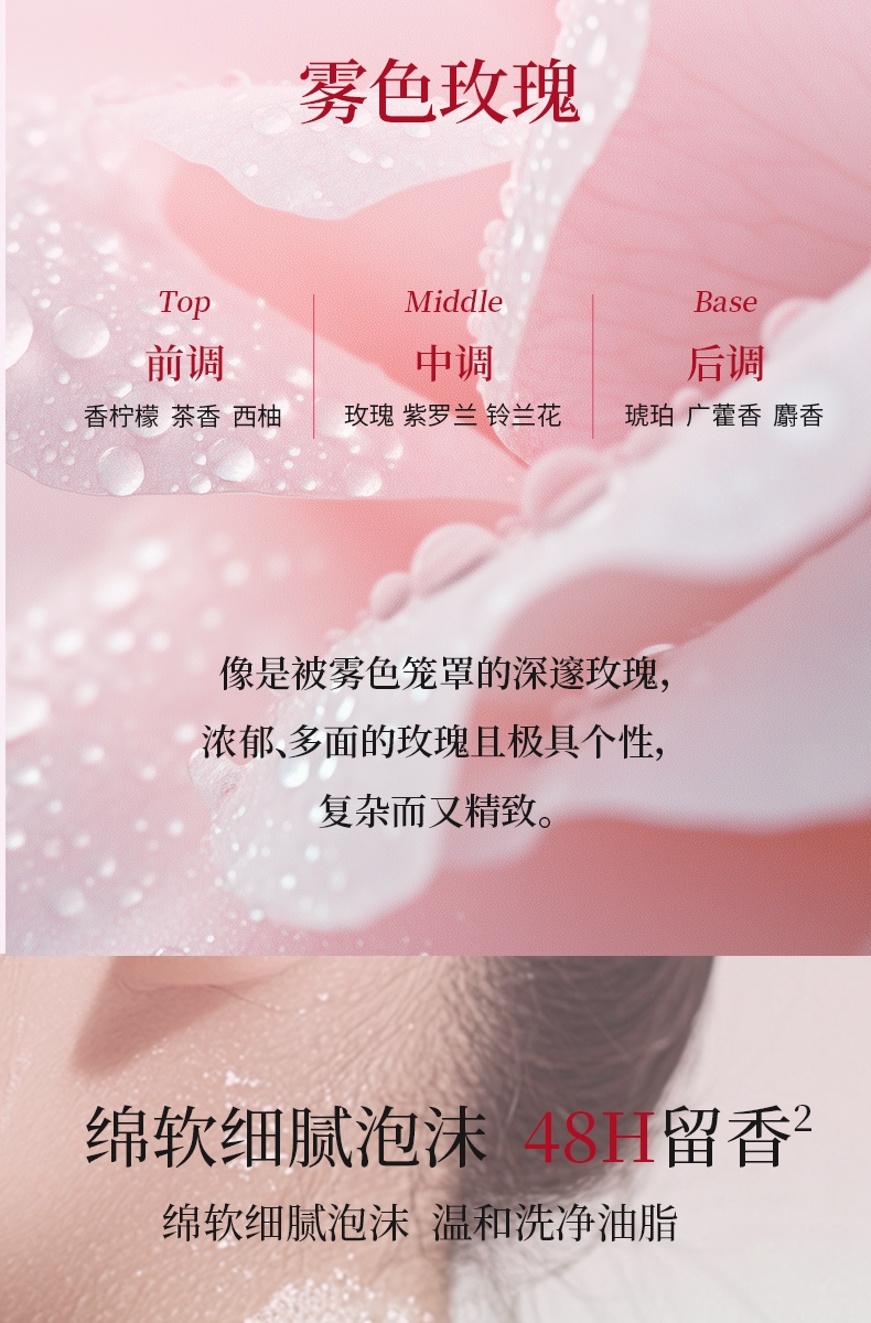 烟酰胺+α-熊果苷双专利成分;美背嫩肤 93.33%认可改善肌肤粗糙 ;48小时留香 国际明星香氛巨头共研