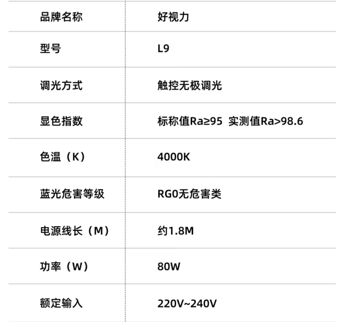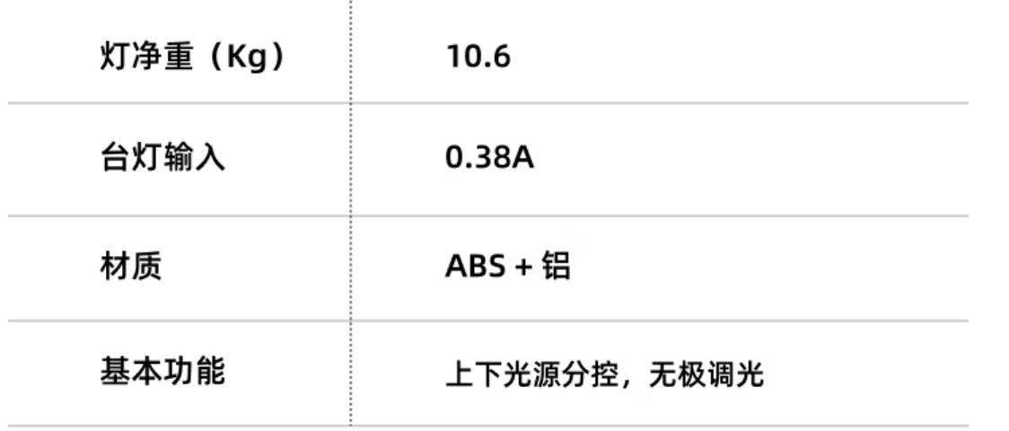 测值Ra>98.6;上下光源分控,无极调光;全光谱光线
