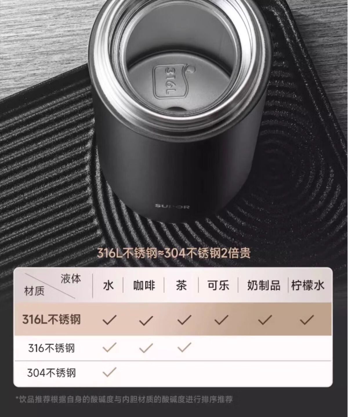 苏泊尔 316L不锈钢保温杯KCV38AM10