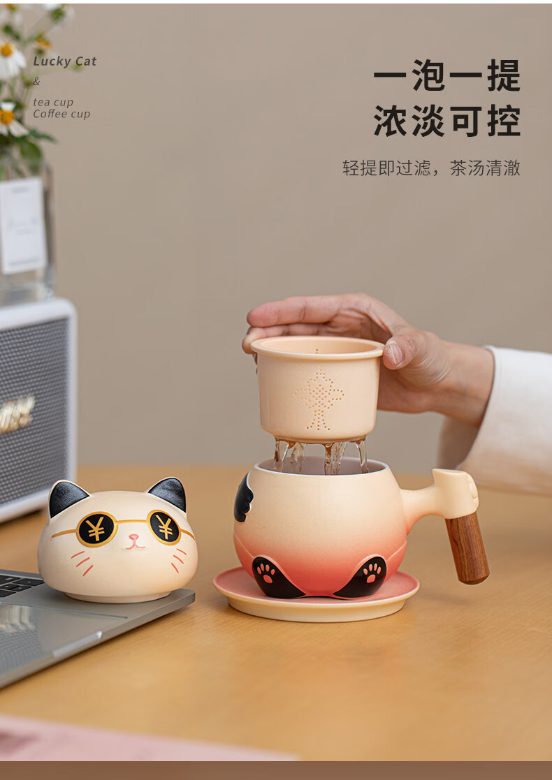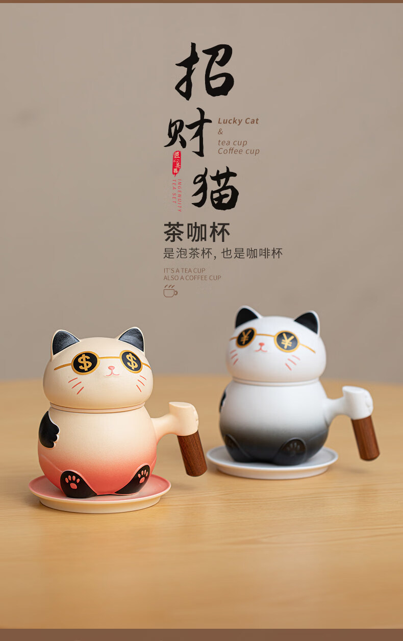 是泡茶杯,也是咖啡杯;招财猫可爱讨喜;独具创意的设计