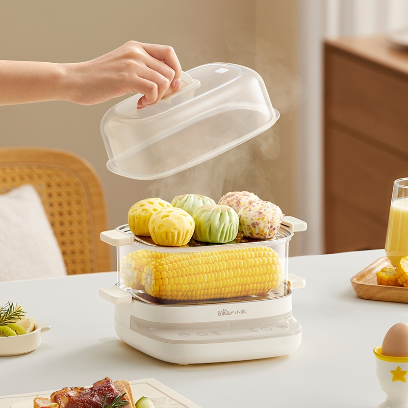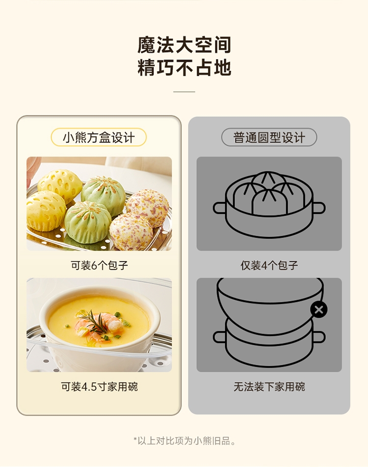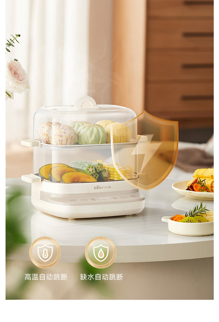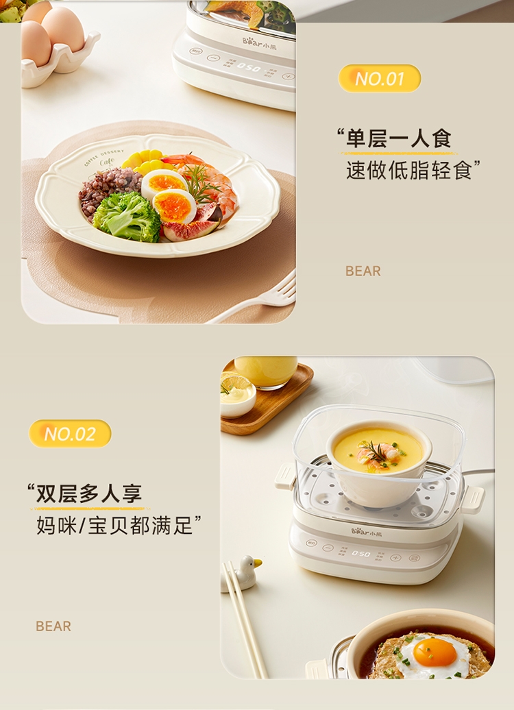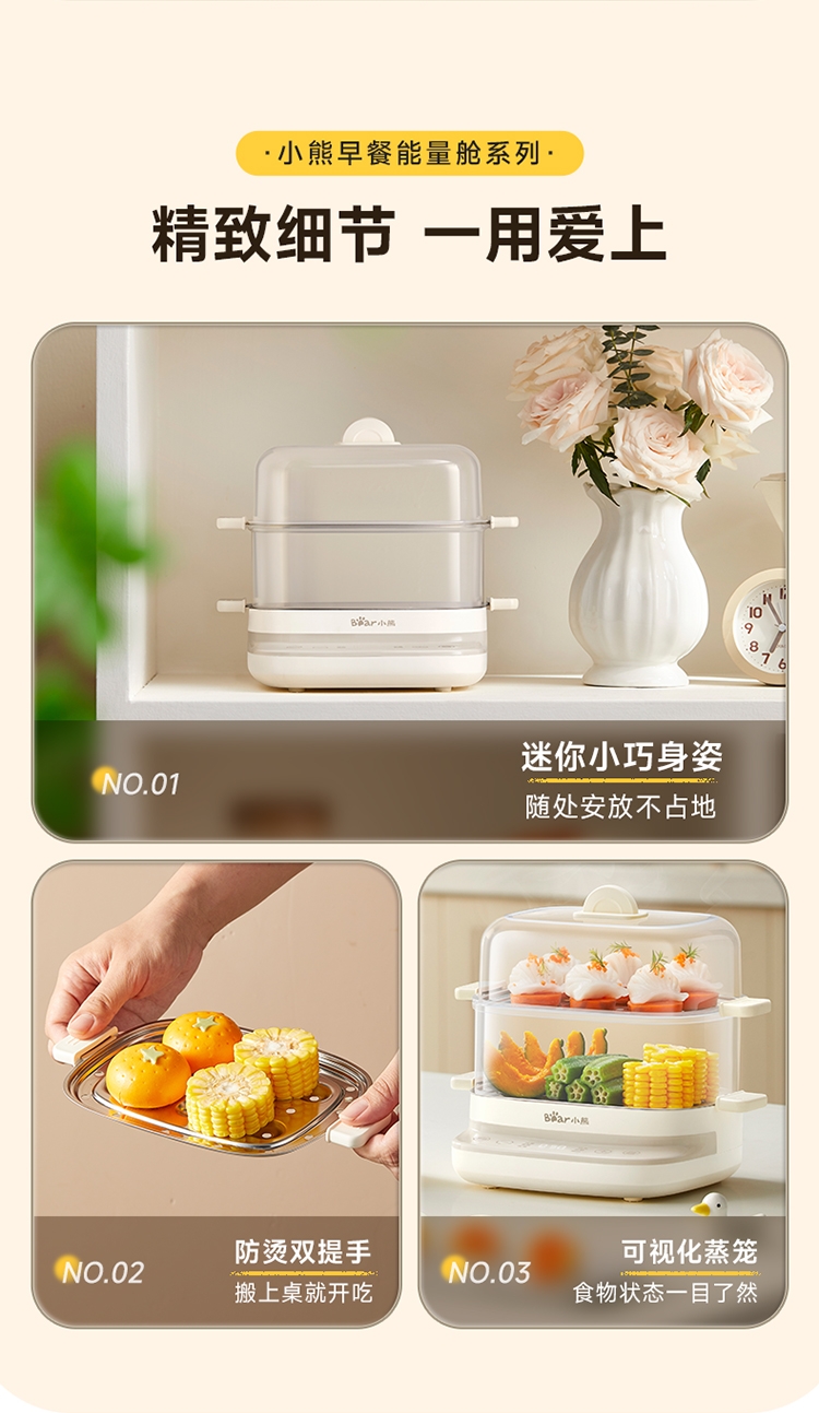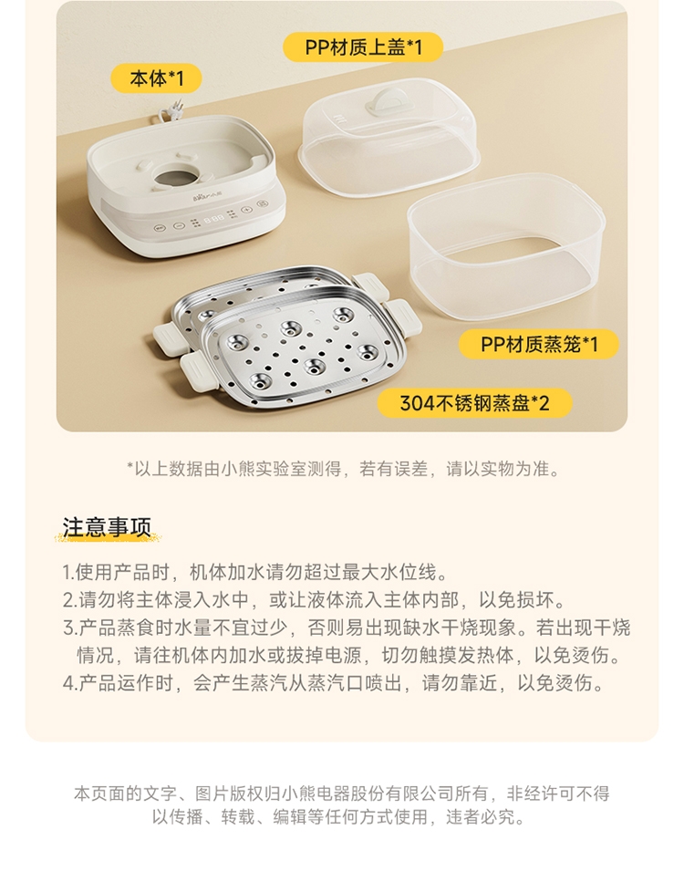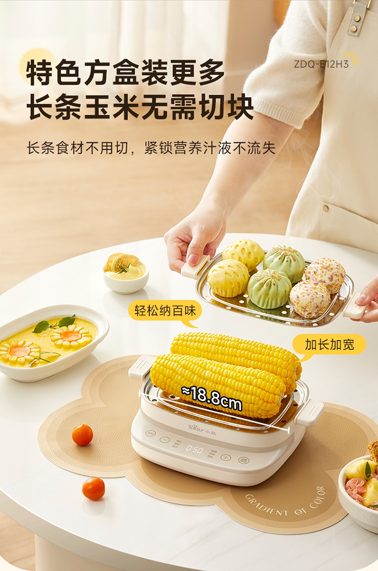 微电脑预约,免早起/免看管;304不锈钢蒸盘,高温无异味;方盒大空间,长条食材不用切