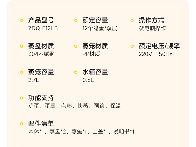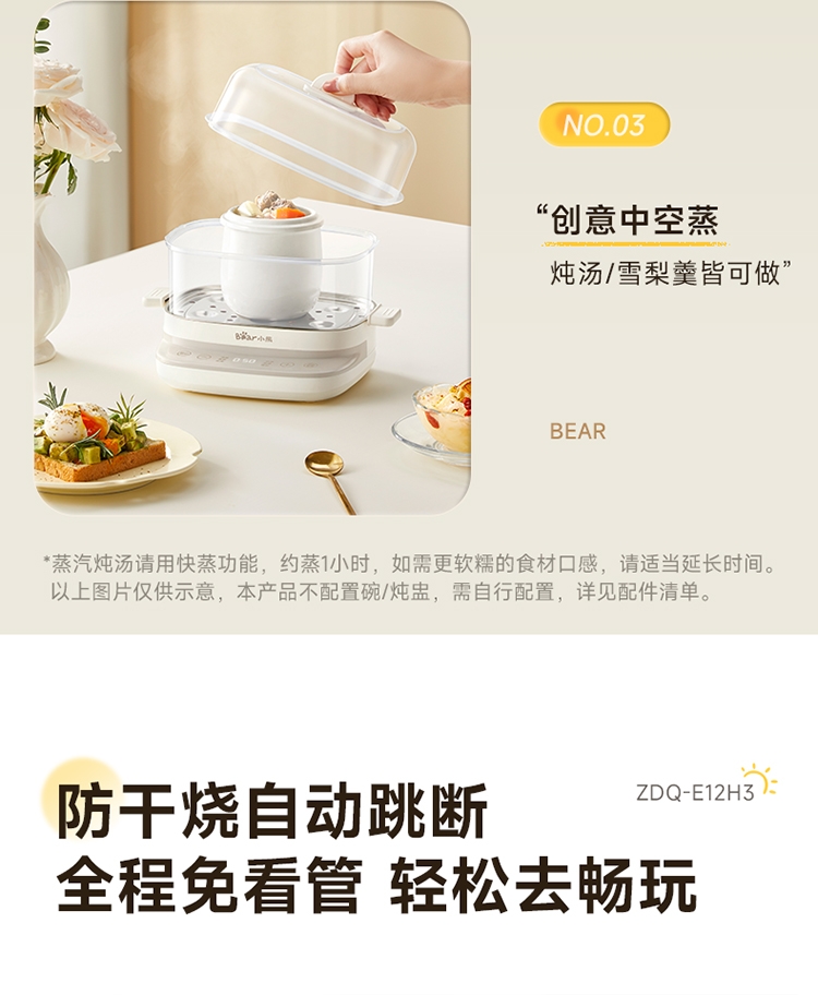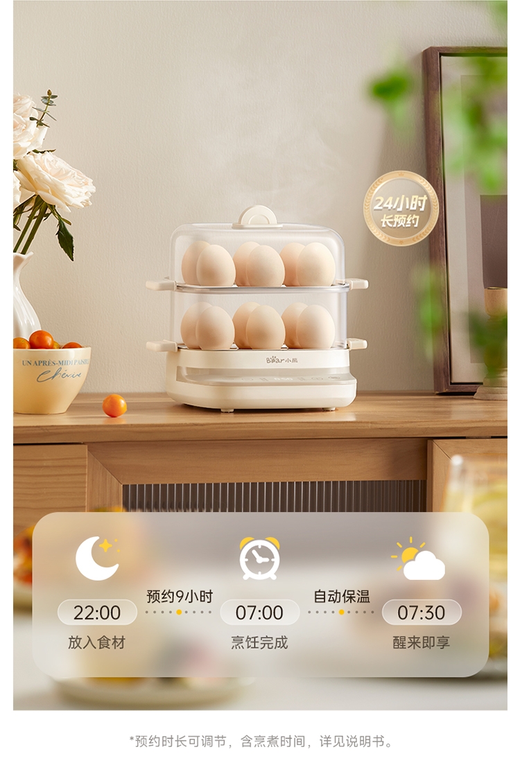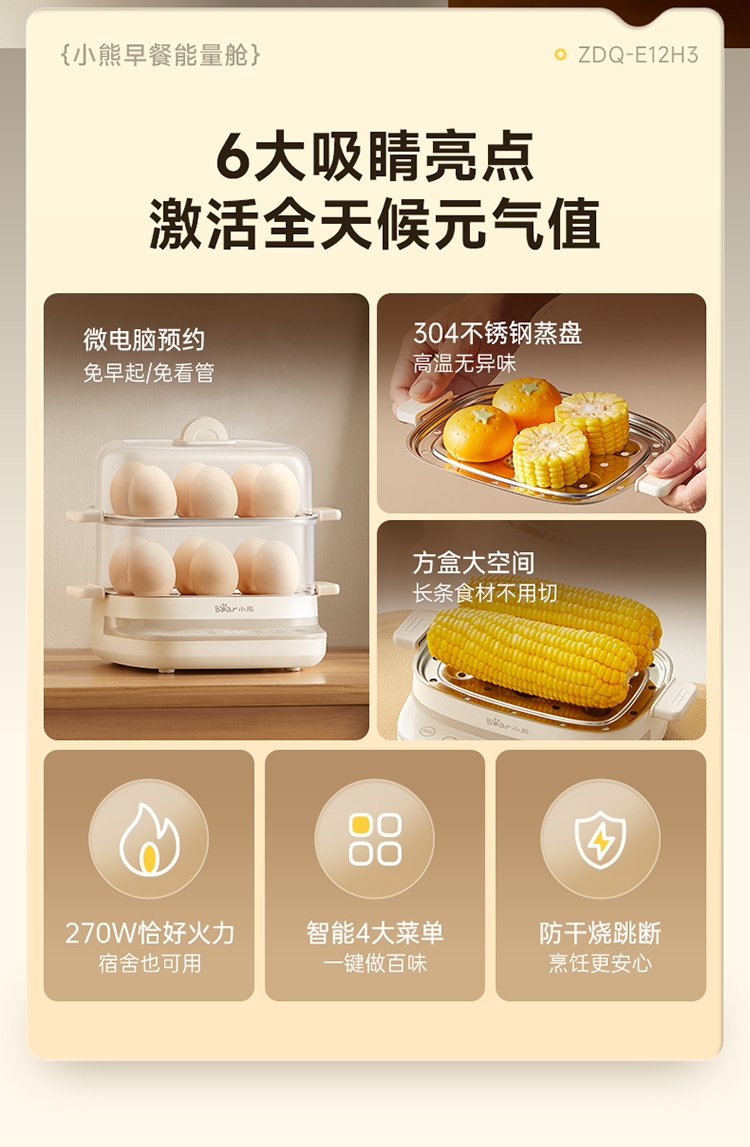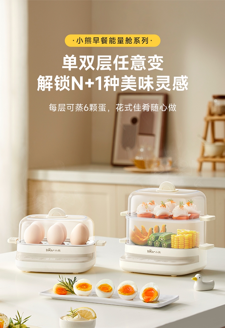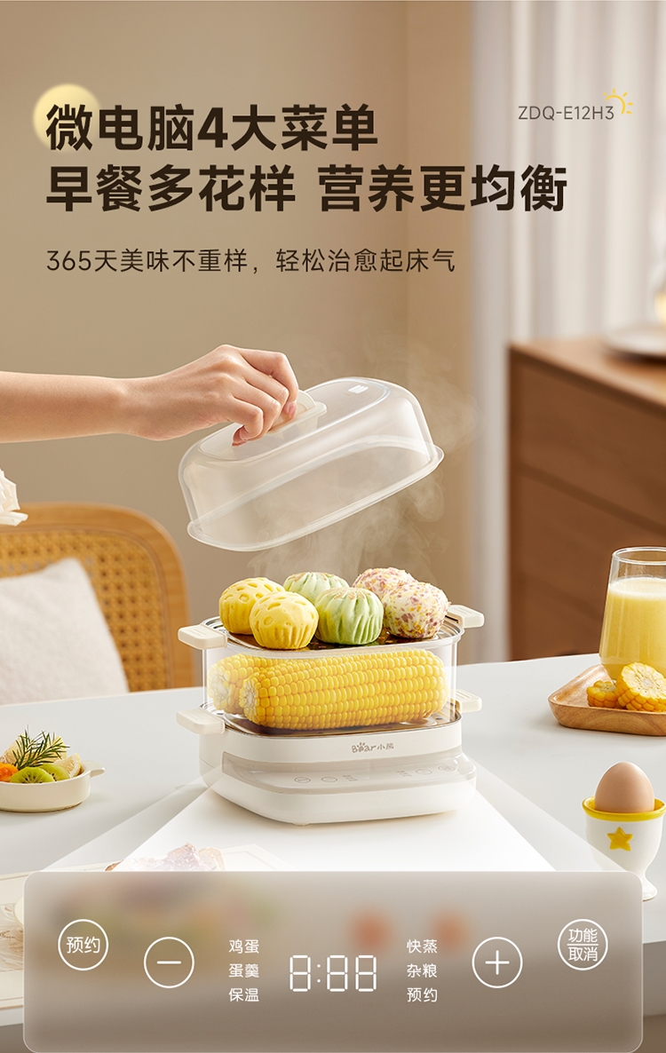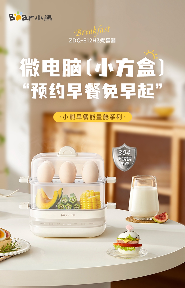 小熊 智能定时煮蛋器蒸蛋器早餐一体机ZDQ-E12H3