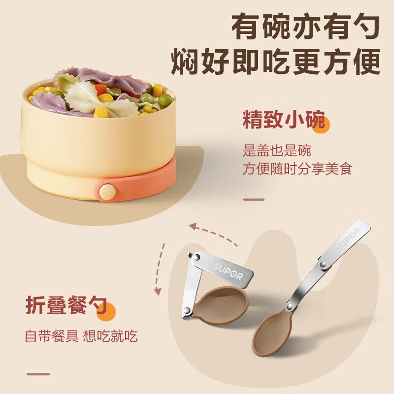 双层陶瓷覆层;大口径壶口易清洗;折叠餐勺硅胶覆盖