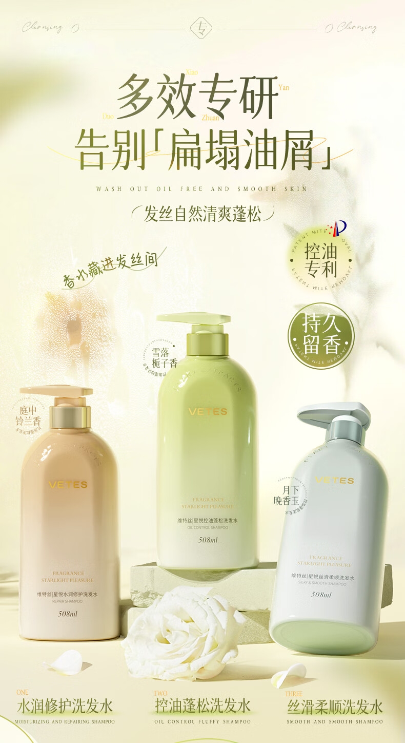 洗发水;去屑止痒控油;持久蓬松