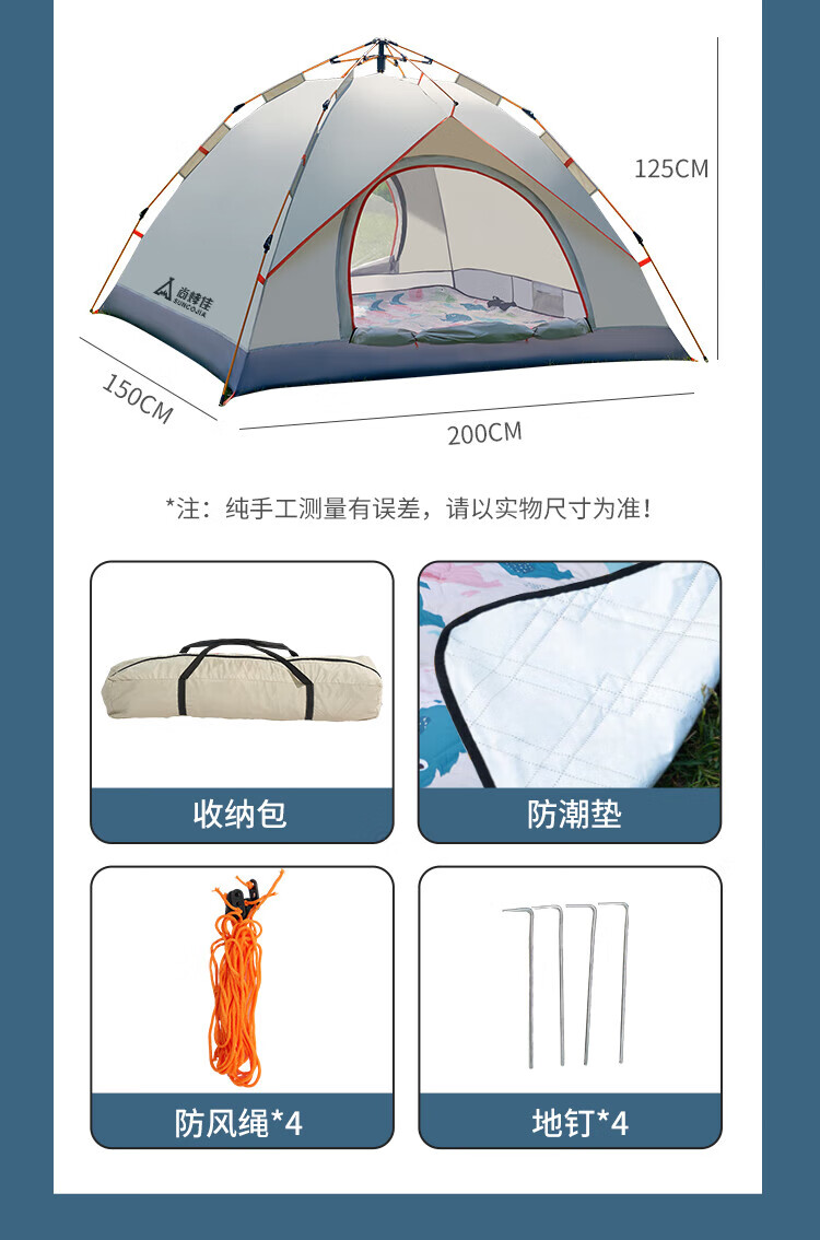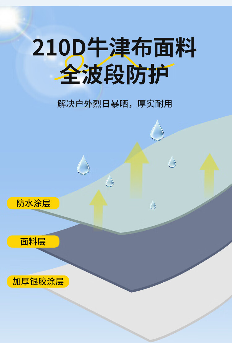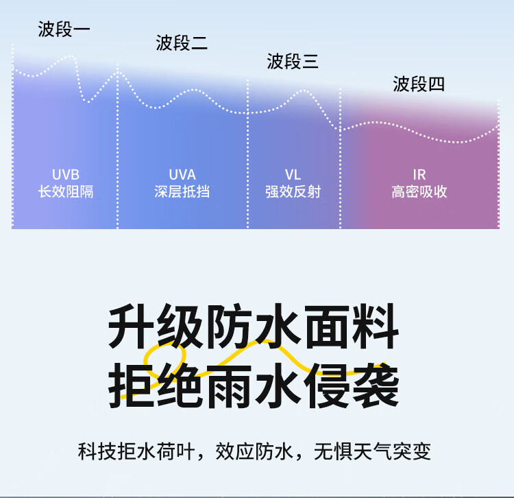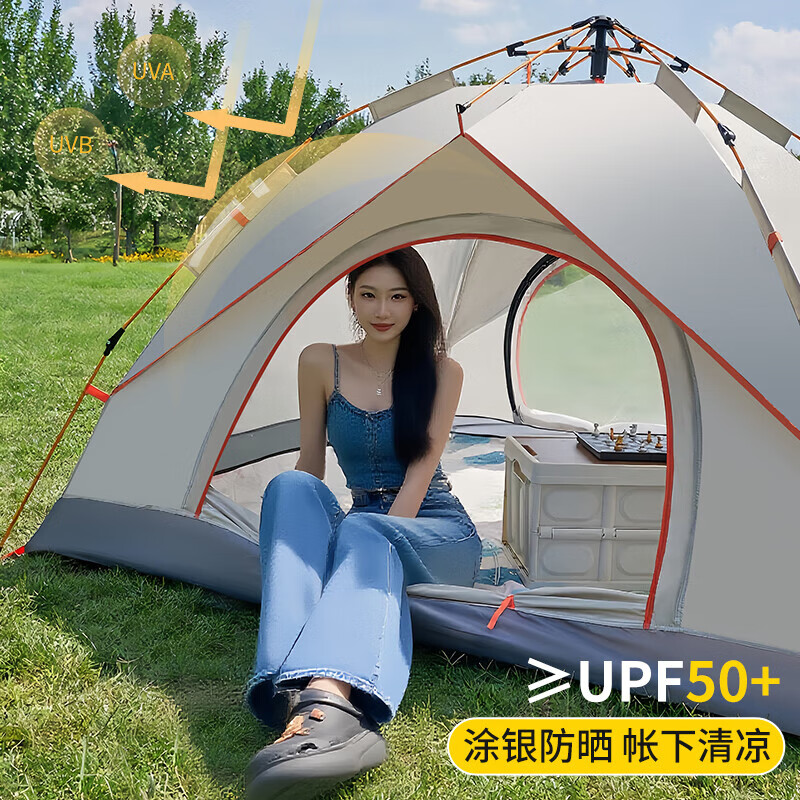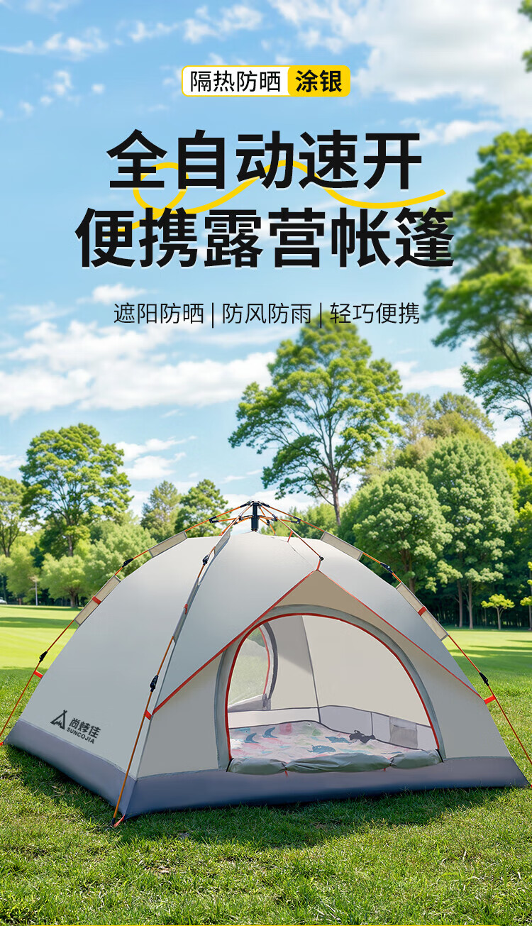 自动速开;透气不闷热、防水防潮;高密细网纱、遮阳防晒