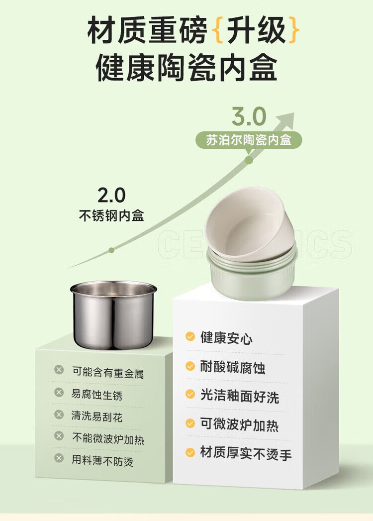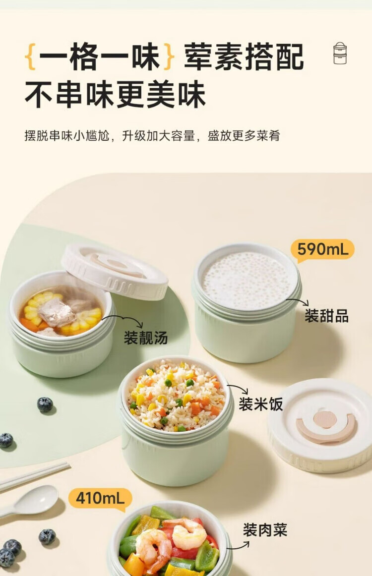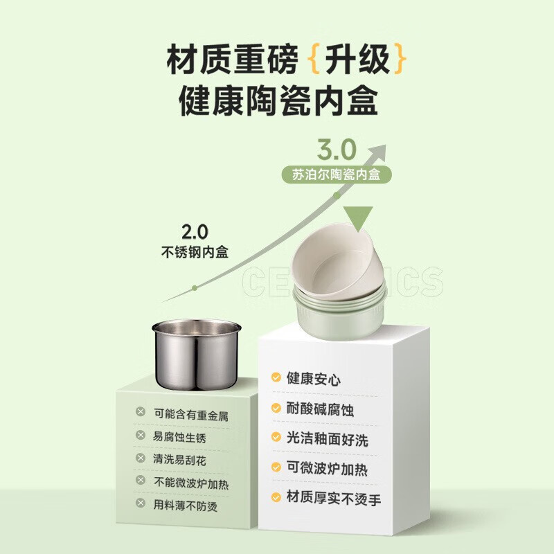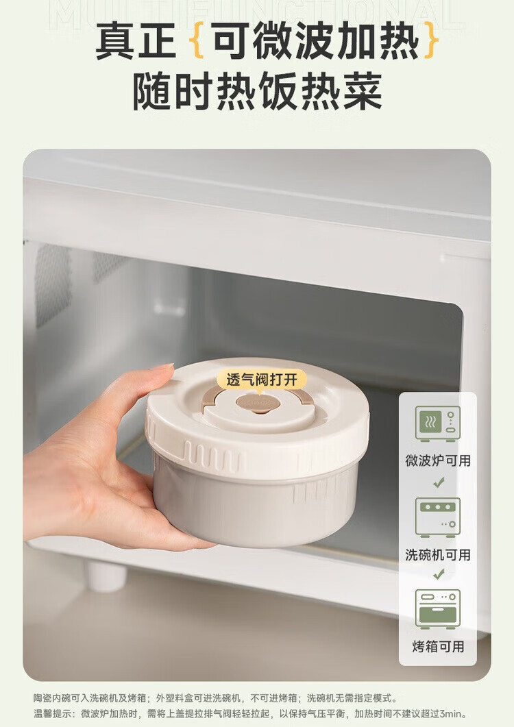 全陶瓷微波炉加热;分层不串味;双层防烫