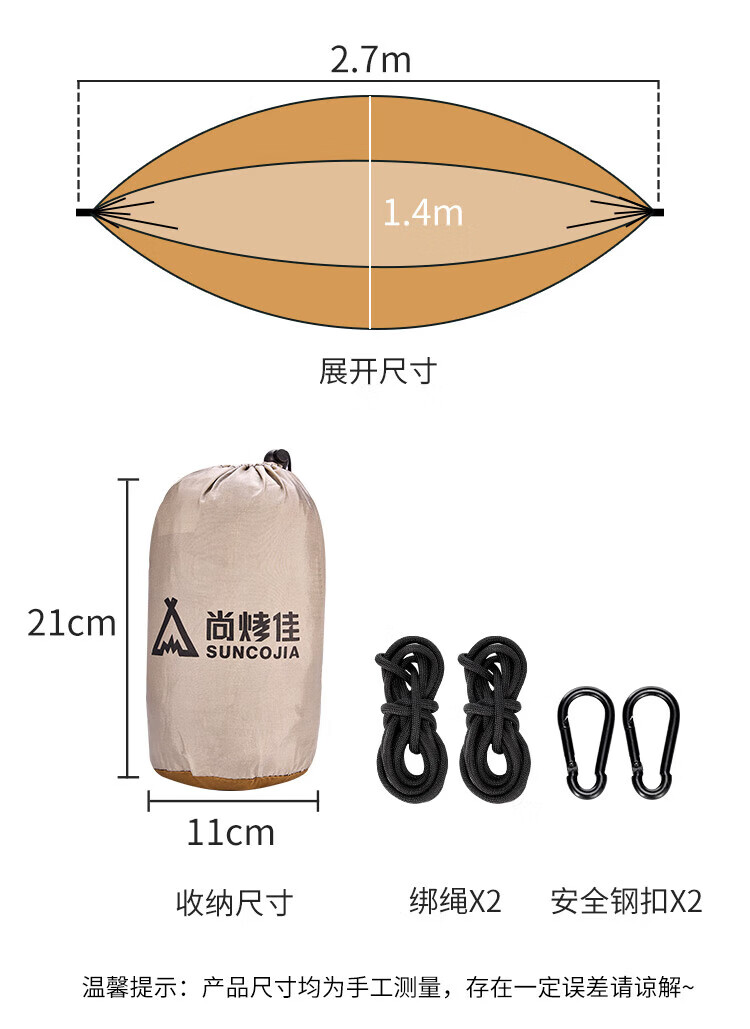 尚烤佳 户外露营必备双人吊床LS-635