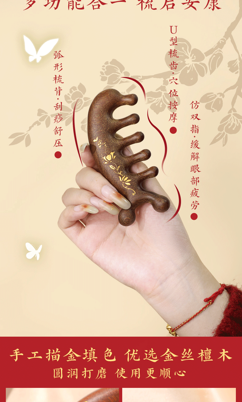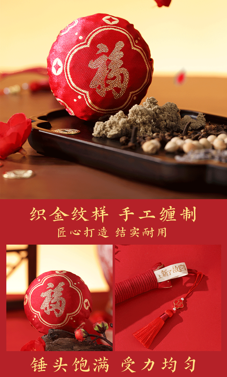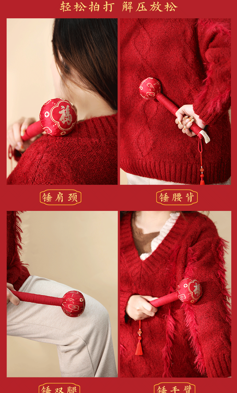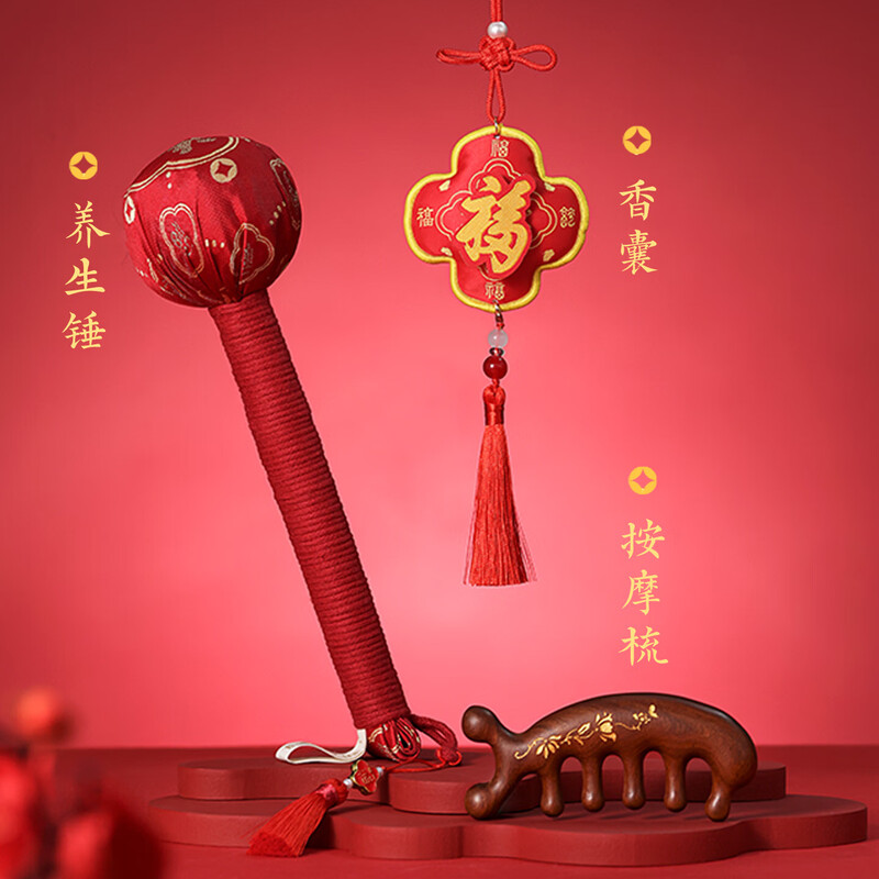 产品规格:养生锤约 7.5*27cm(不含流苏),按摩梳约 11.2*5*1.8cm,香囊约 88cm(不含流苏挂绳)