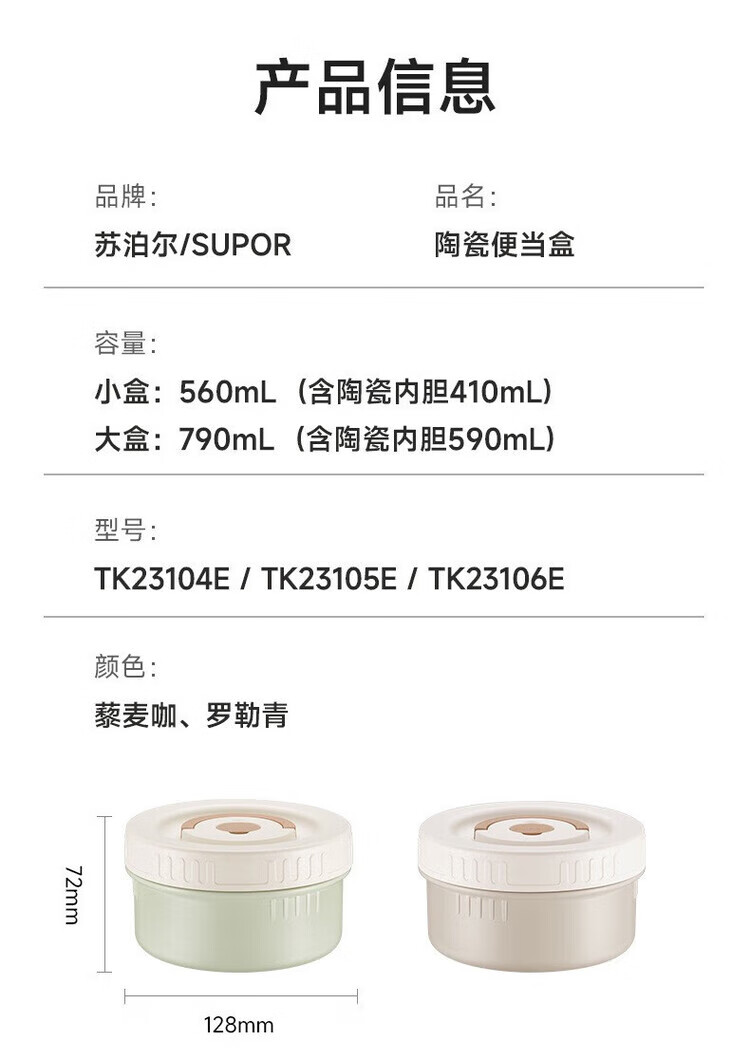 陶瓷内盒可微波加热;分层不串味;双层防烫