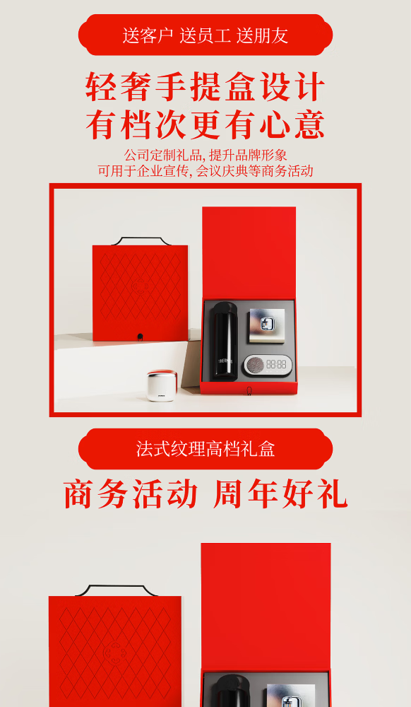 有色剃须刀:潮色精剃,敏肌无负担;保温杯:长效锁温,密封防漏便携;时钟蓝牙音响:蓝牙、时钟两用功能 、小巧精致