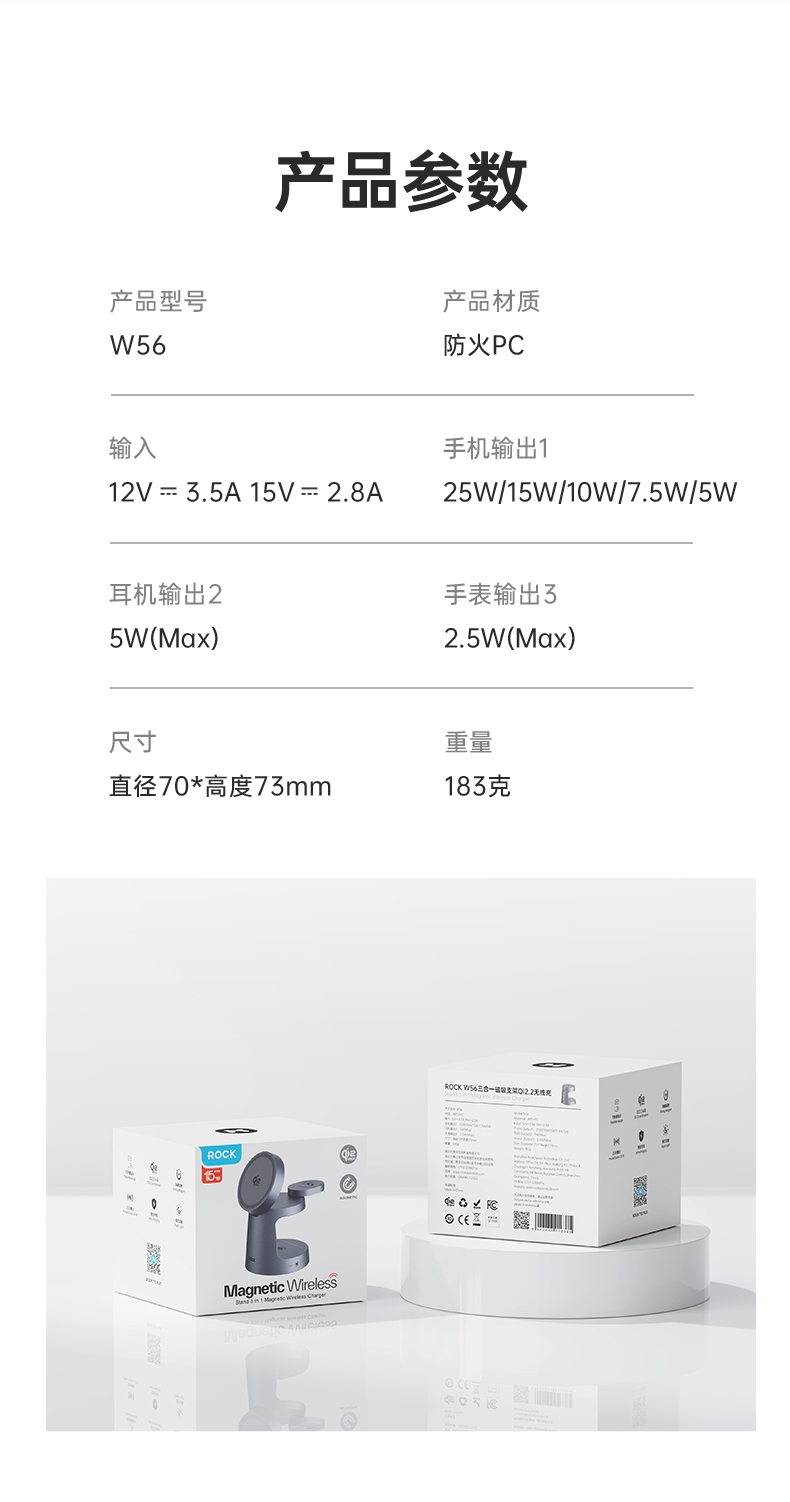 ROCK 三合一磁吸支架25W无线充W56