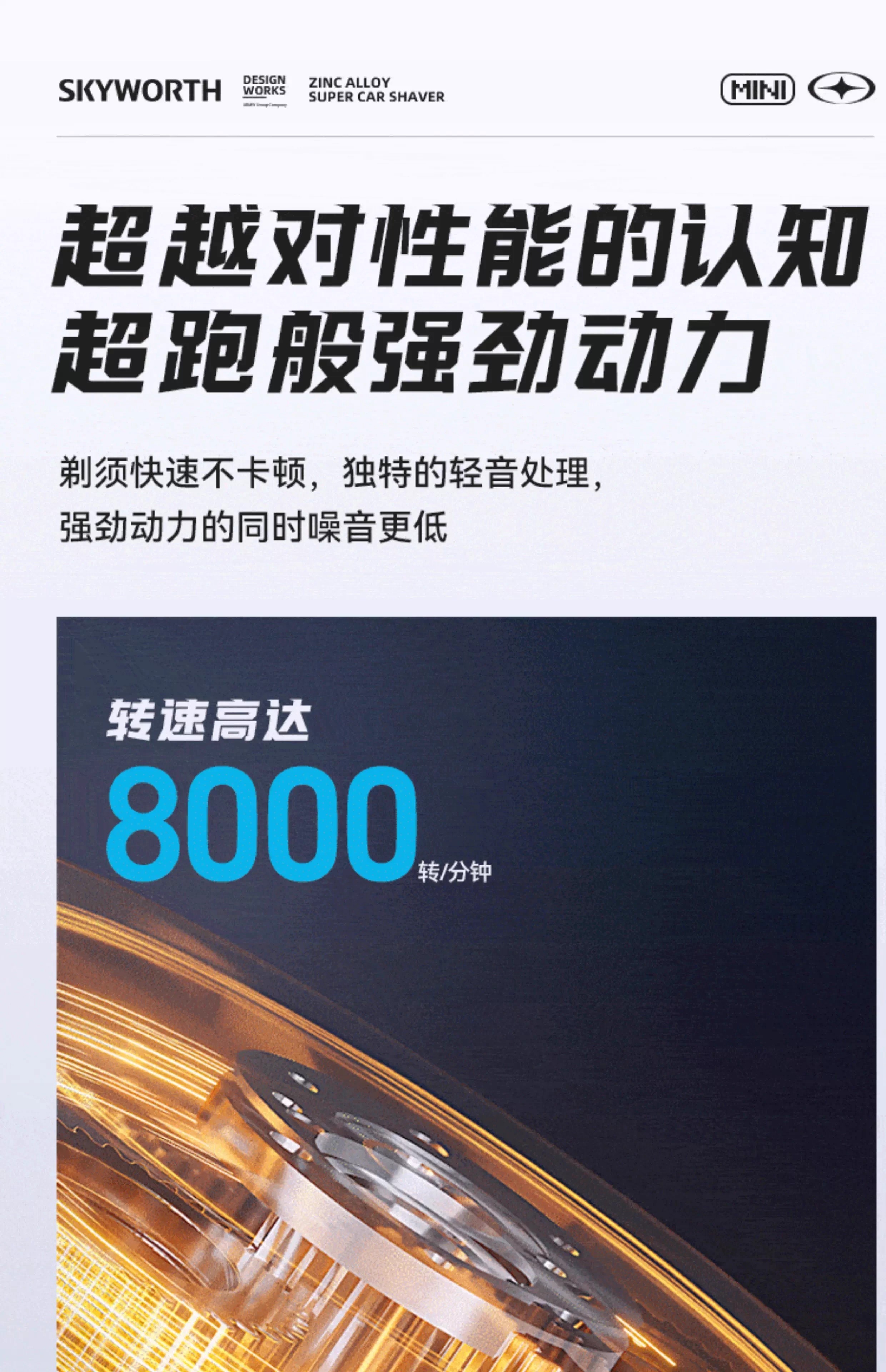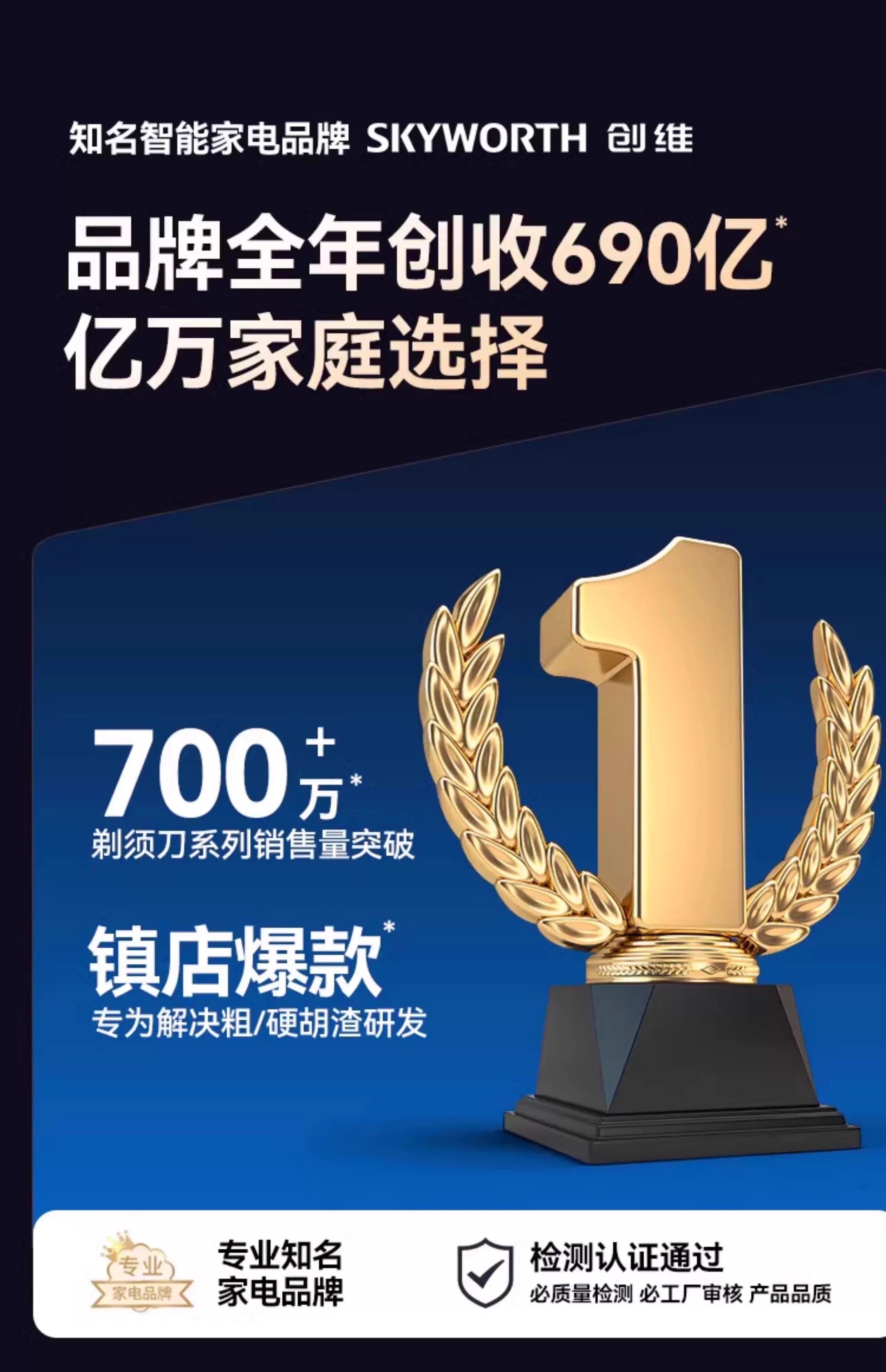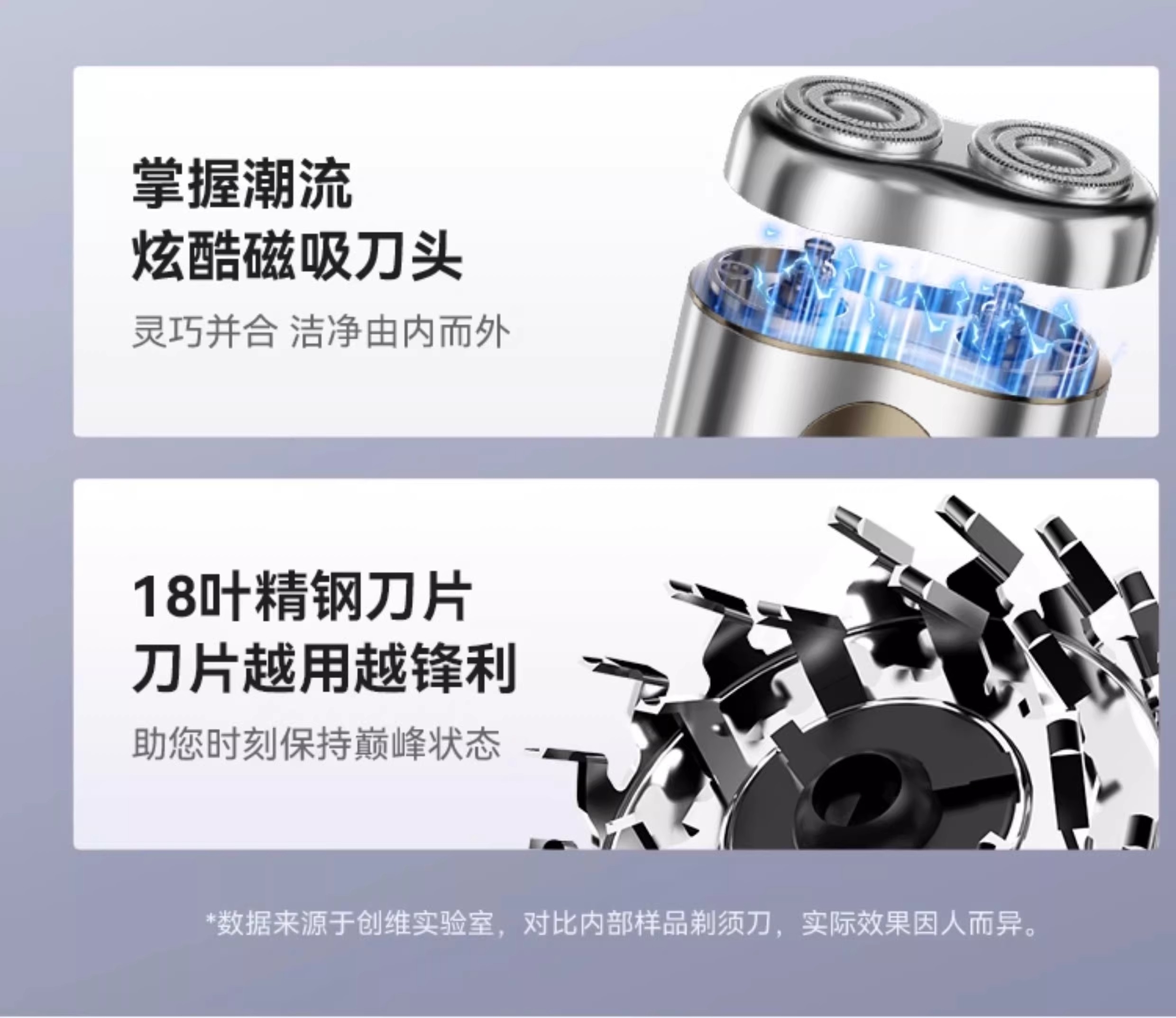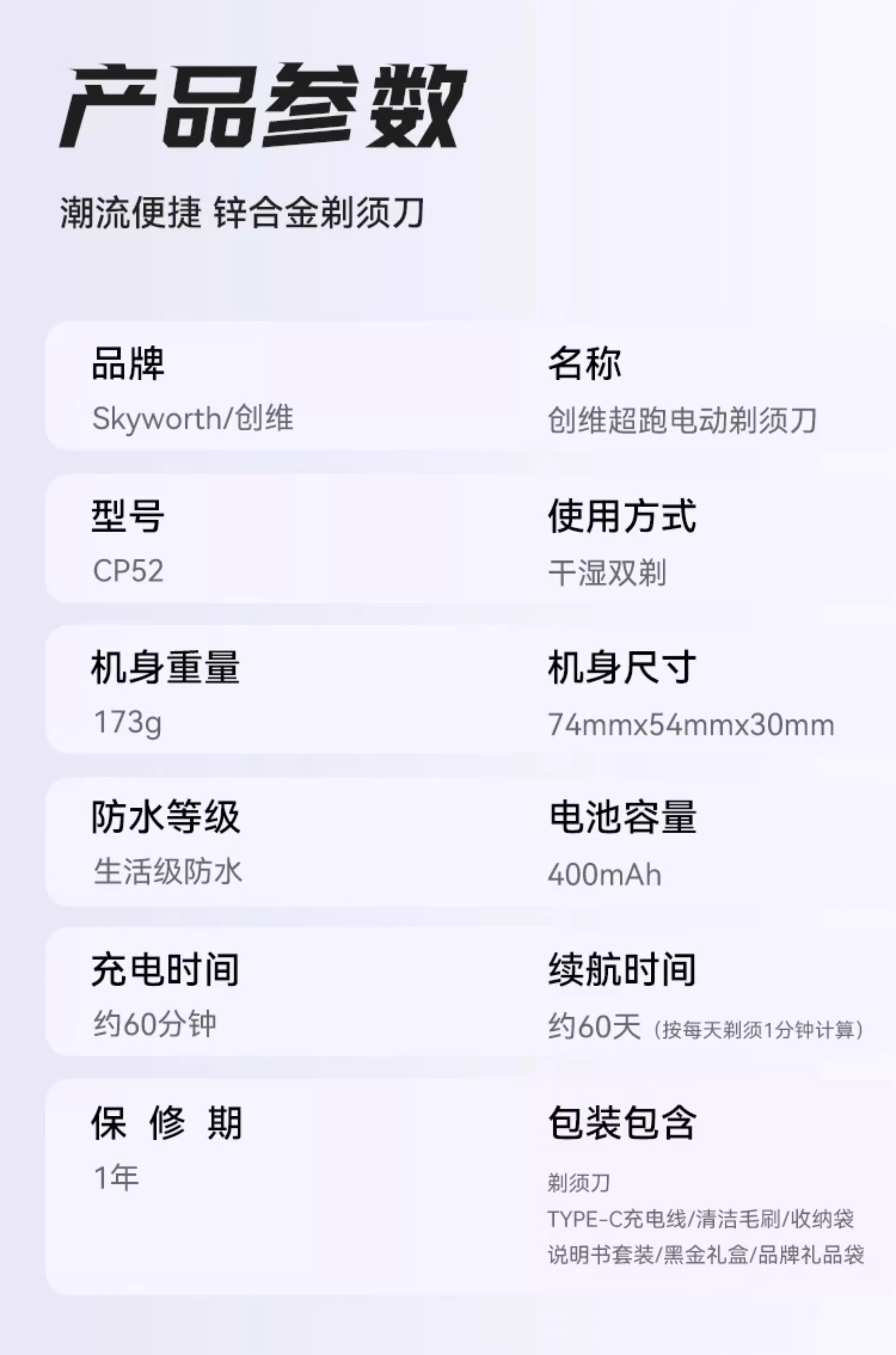 合金机身,镜面光泽 浮动刀网,360°捕捉残留胡须;PX7级防水,干湿双剃 充电一小时,续航60天;自研磨技术,刀片越用越锋利
