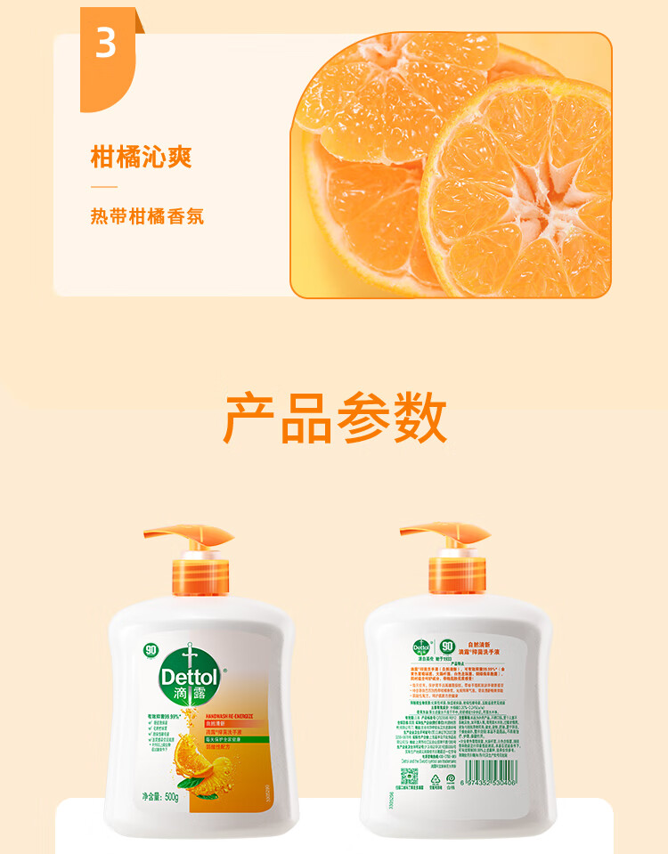 柑橘清新 清爽洁净;给手部肌肤健康洁净;温和配方