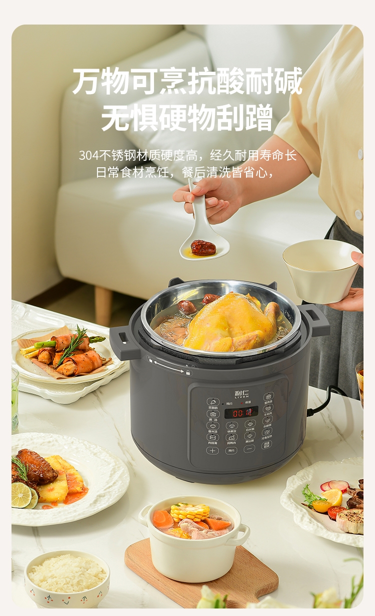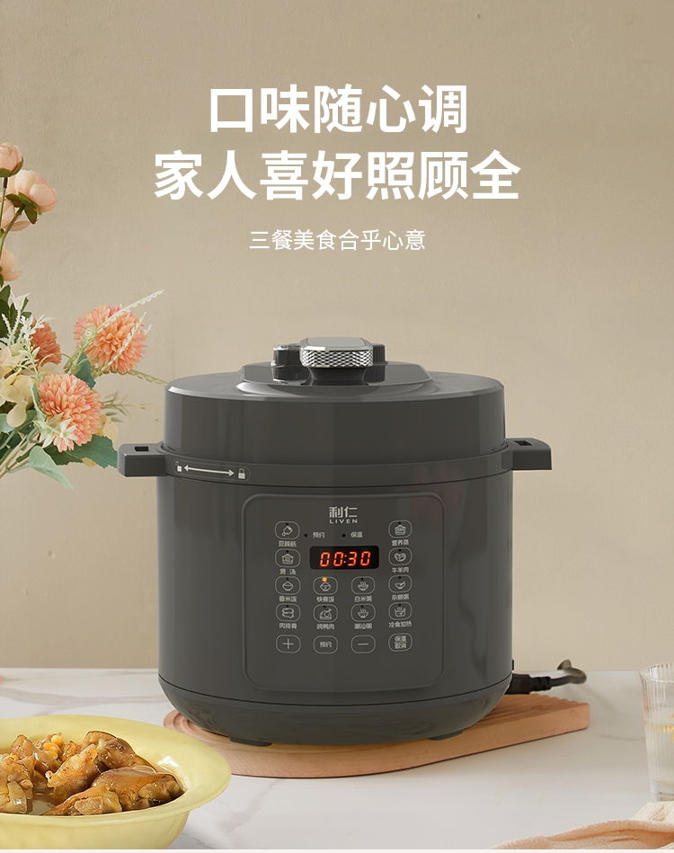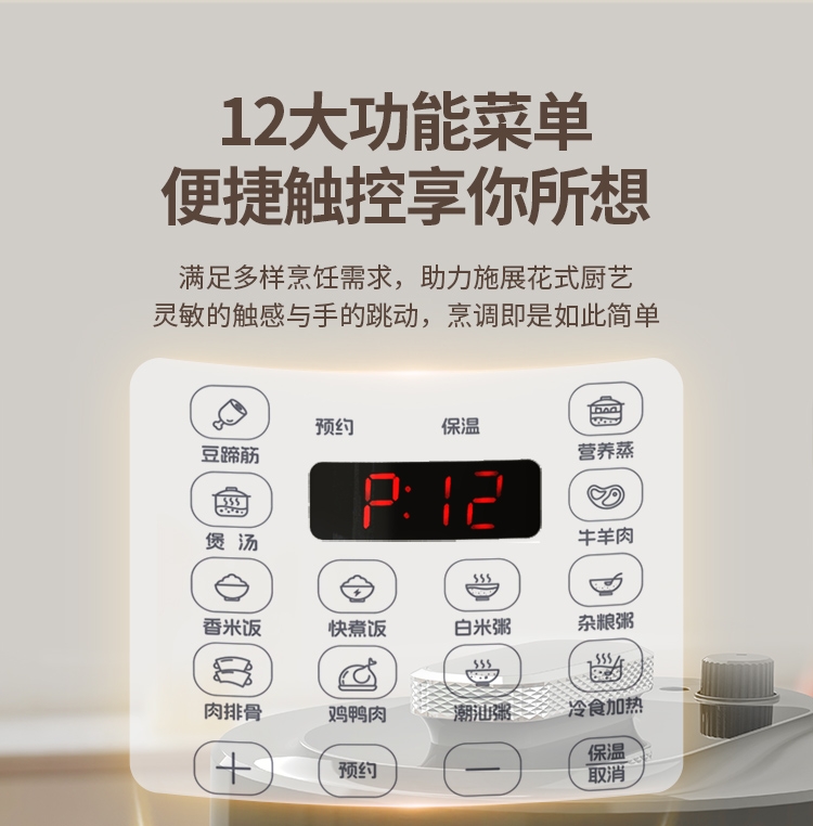 电压锅功能:煮,炖,焖,预约