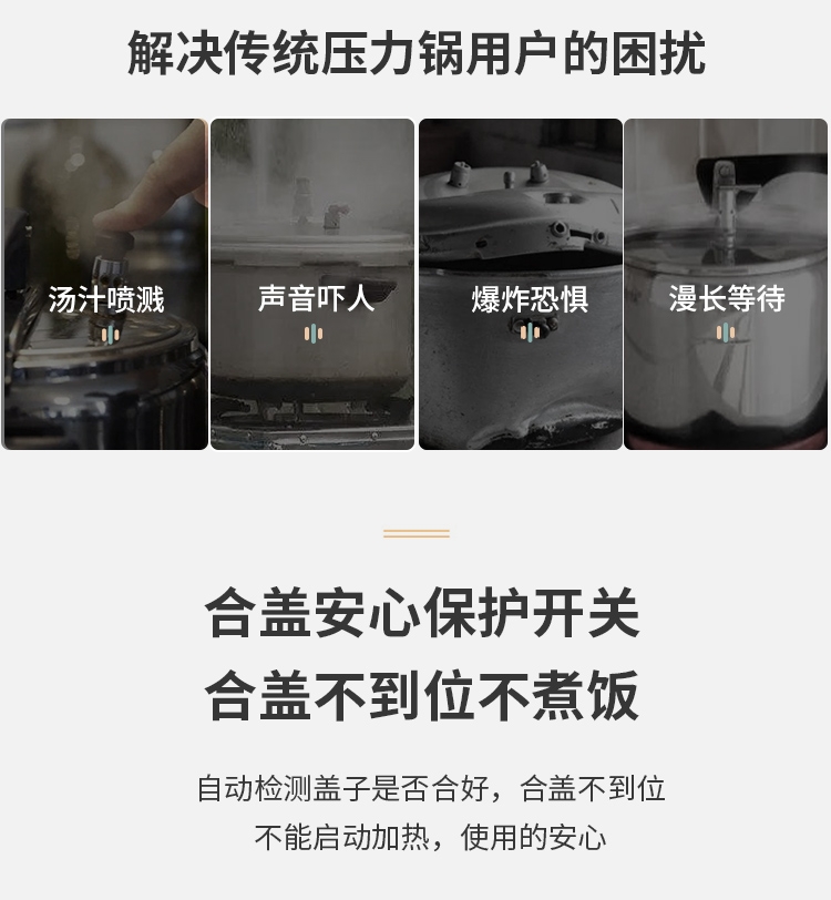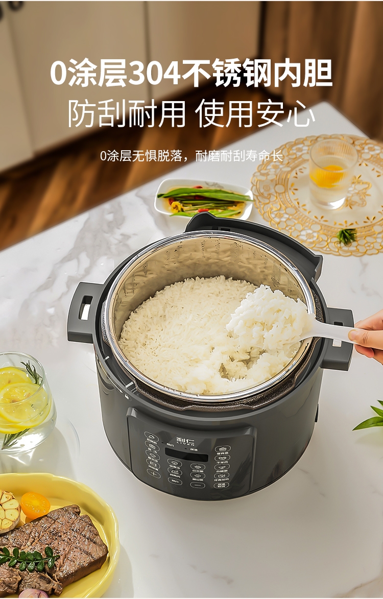 健康0涂层 双胆高压快煮;304不锈钢材质硬度高,经久耐用寿命长;一锅双内胆 专胆专用不串味