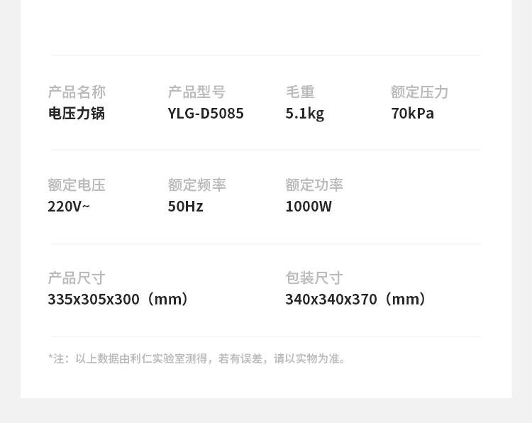 利仁 电压力锅YLG-D5085