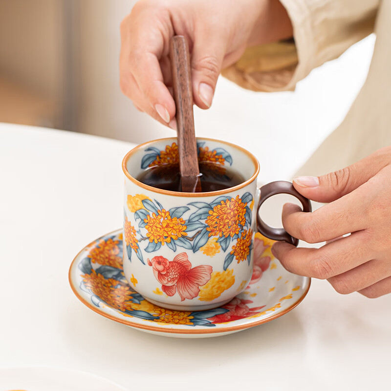 金镶玉 马克杯水杯金玉满堂汝窑咖啡杯