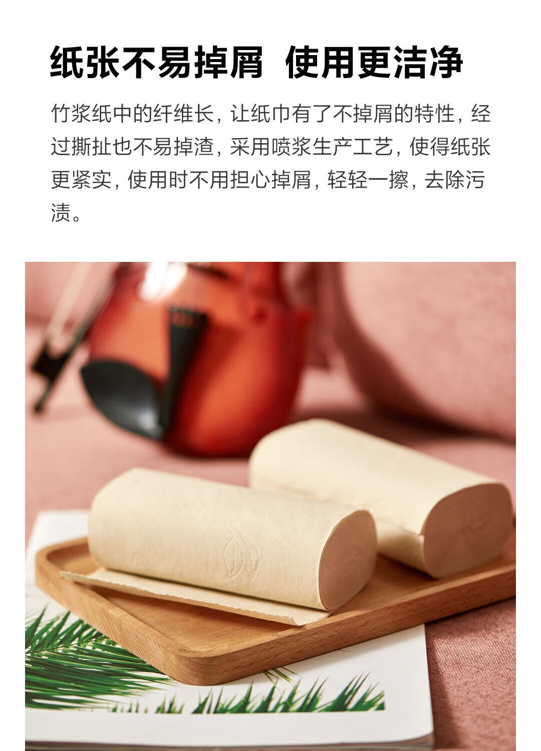 以竹代木,健康环保; 纸张不掉屑,柔韧亲肤; 大容量,更高性价比